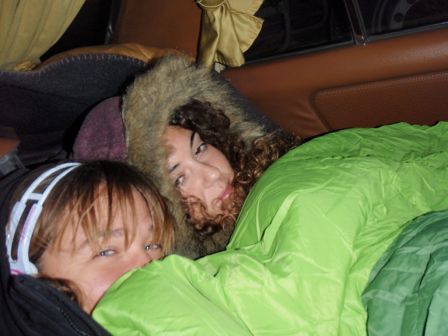 23H24 : complètement affolées par la conduite du taximan, frigorifiées à l’arrière du taxi, nous roulons toutes vitres ouvertes vers Essa, emmitouflées sous un duvet