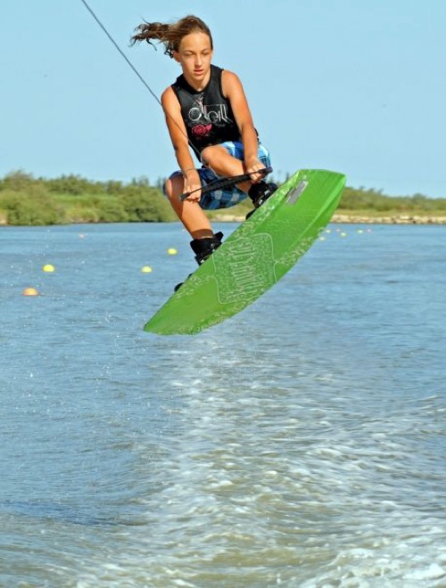 1) Coraline : nouvelle participante, 12 ans, et déjà un joli passé en barefoot et wake. Meilleur run : box+kicker sur le treuil !