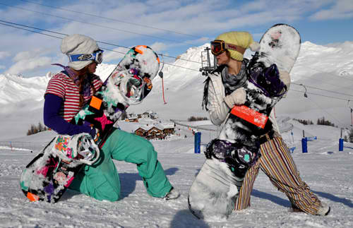 1 skieuse et 3 snowboardeuses : à venir dans un prochain post, nos avis girly (éminemment professionnels) sur le matos testé.