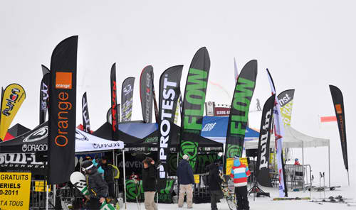 DSC_0262_-_copie_2Le téléphérique nous dépose en haut des pistes où se trouve tout le village test. Un nombre de marques à nous faire baver nous présentent le matos de l’année à venir.DSC_0252_-_copie_2Et comme si ce n’était pas assez, Power Balance propose des contests sur le park en n’offrant pas moins de 800€ en petites coupures aux téméraires participants !