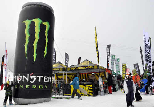 Sur le front de neige, 2 bus se font face, l’un appartient à Monster, la boisson énergétique. Pour sa promo et notre plus grand bonheur, les Monster Girls distribueront des canettes tout le WE dans leur stand chill out / consoles & canapés toute la journée (et toute la nuit.. on dormira quand on se sera fait les ligaments et qu’on sera vieille !)