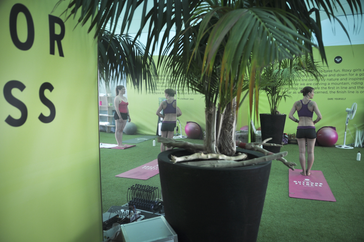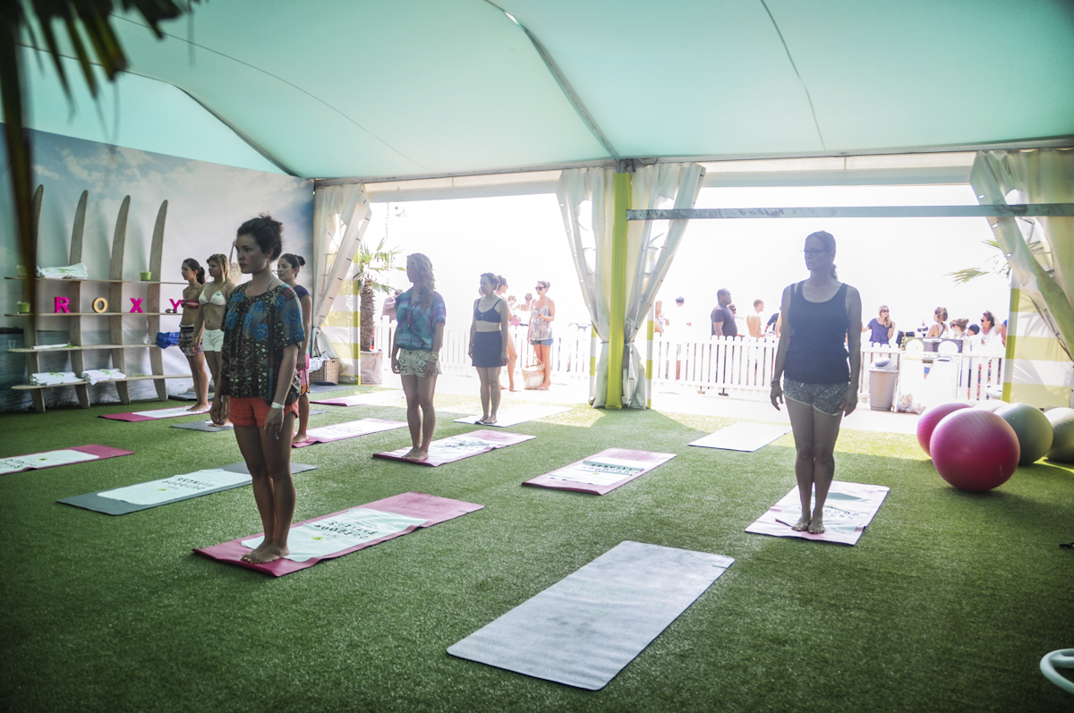 Pour continuer sur la lancée de l’interview de Margot, on s’est inscrite à son cours de yoga ashtanga qui avait lieu sous la tente Roxy Outdoor Fitness de ce Roxy Pro.