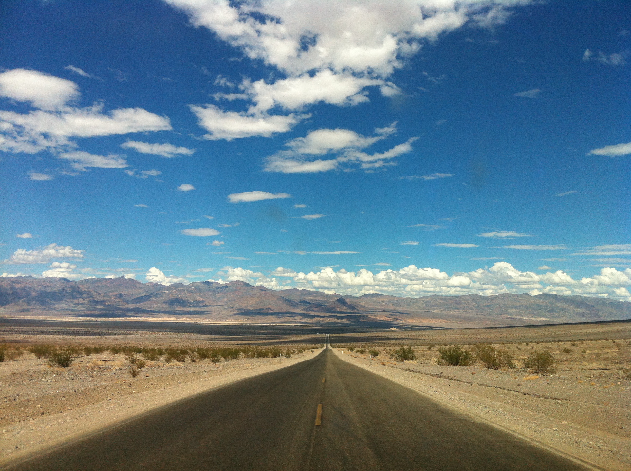 Mais pas assez chaud apparemment puisque le périple continue en direction du Nevada où on traverse la Death Valley : 46°c, des merveilles archéologiques, des routes droites à l’infini, des paysages désertiques : vive la clim !