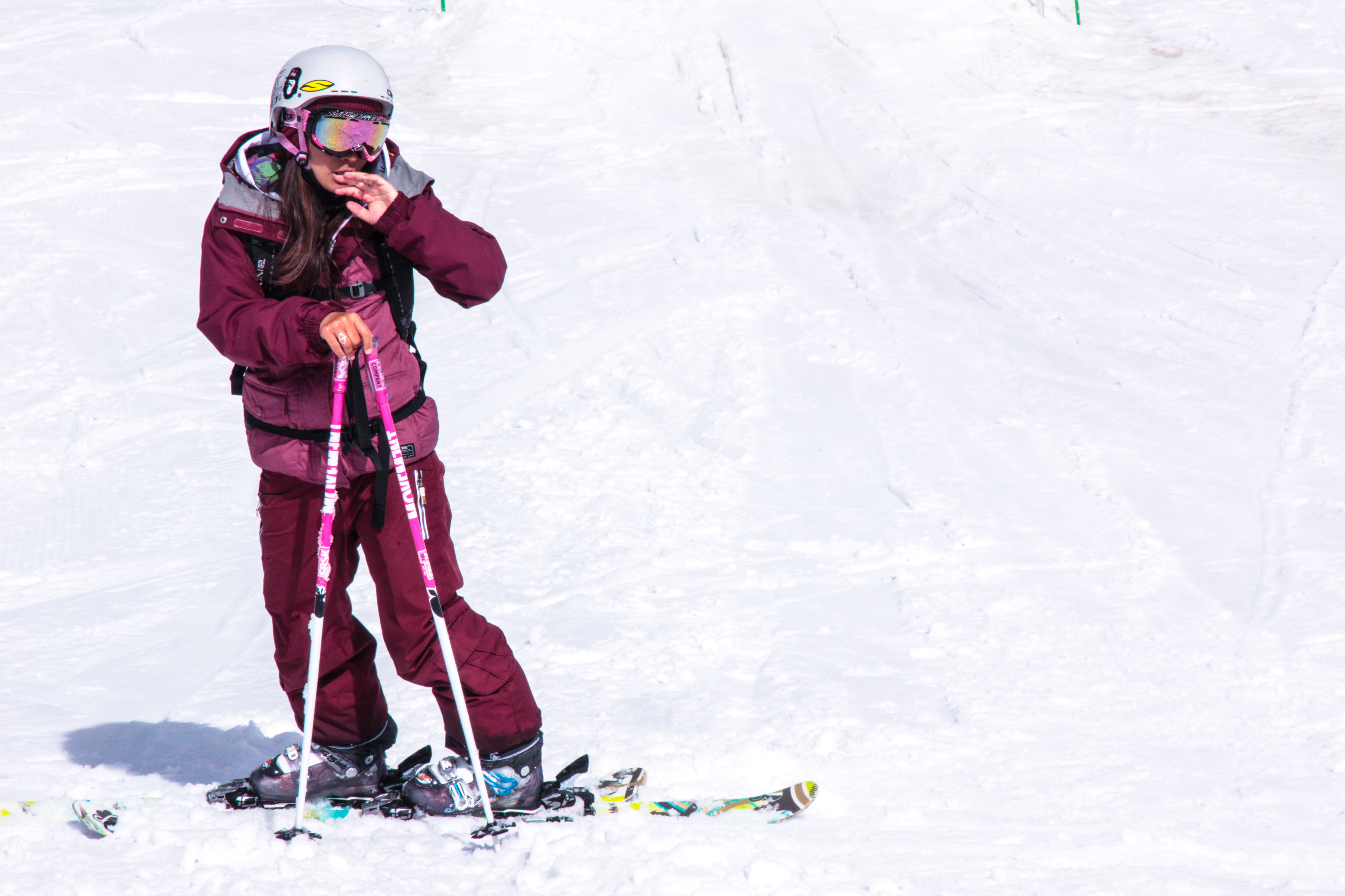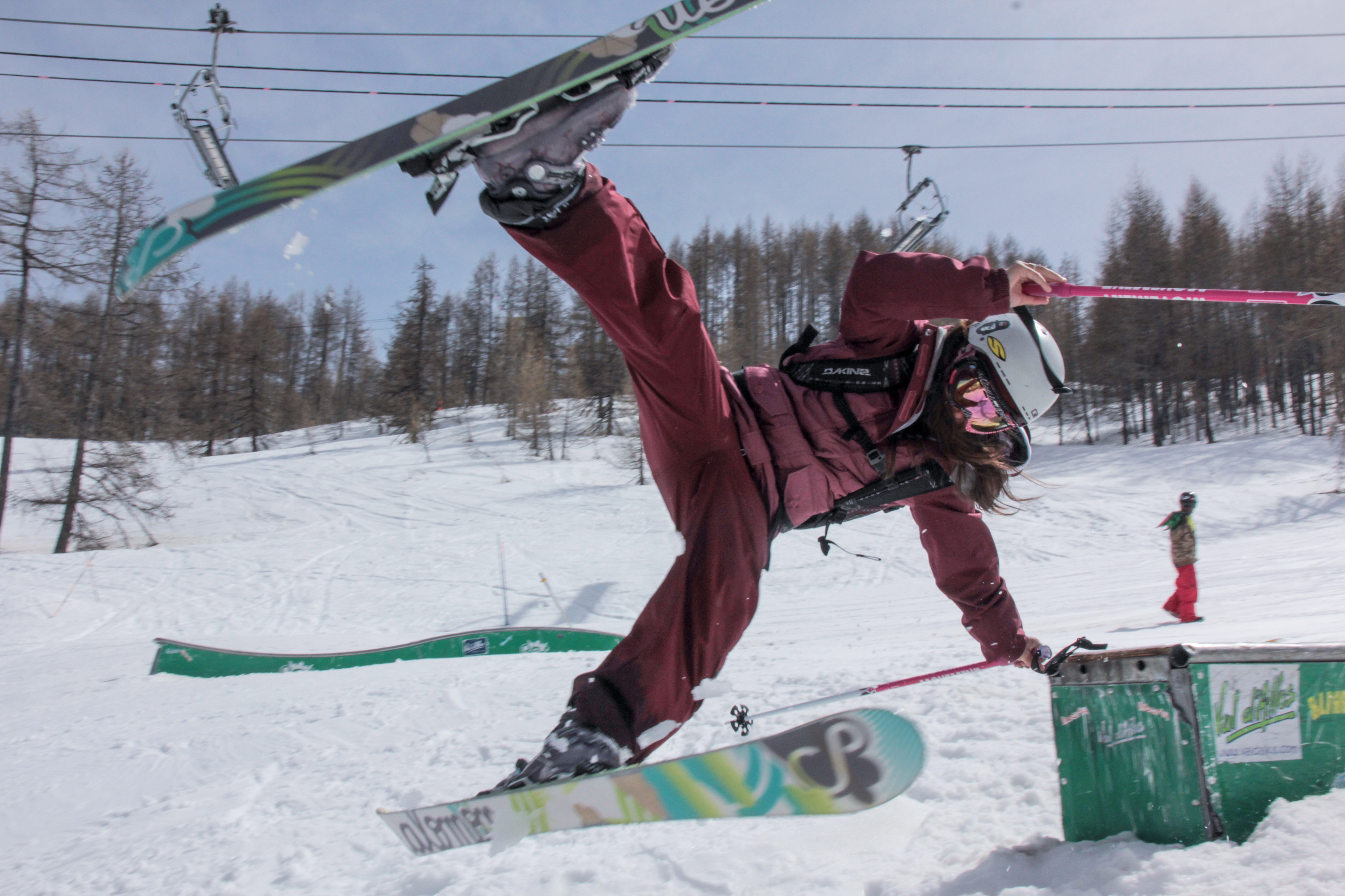 Amel, 24 ans, est une locale de La Foux d’Allos (04 – HQ hivernal du Pink Pack), discrète mais efficace. On a + l’habitude de se prendre la neige qu’elle fait voler derrière ses skis que de lui passer devant. Elle ride fort, engagé, faisait beaucoup de park avant et se jette désormais de tout son être dans le freeride.
