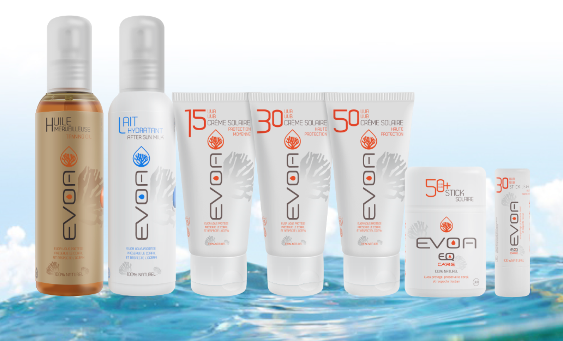 Evoa est la première gamme au monde de crèmes solaires éco-compatibles.