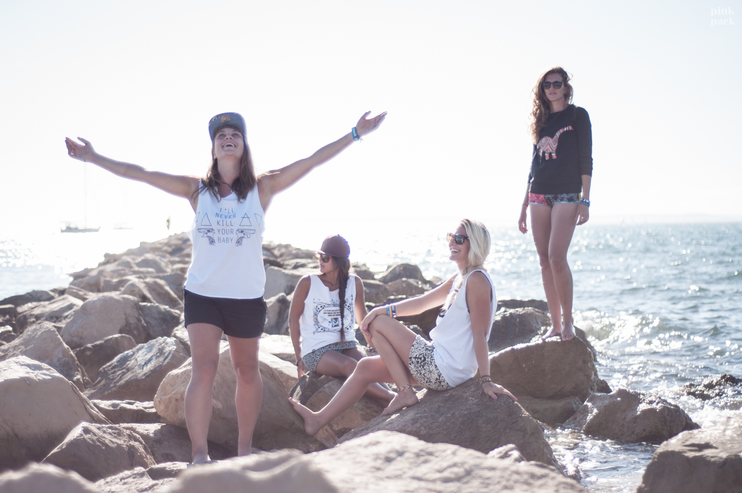 Bref. Au final, ça a donné un week tout plein de vent, de soleil, de yoga, de paddle, de sourires, de caïpi, de pédalo-kite, de gaufres géantes au Nutella, de faux départs de soirée, de partenaires Pink Pack et on en passe. Marie-Laure (NDLR : créatrice de la marque Bloody Marie, pour les poissons rouges) avait envoyé à Momo, récemment nommée ambassadrice Bloody Marie, un joli colis plein de ses jolies pièces (oui, tout est joli).