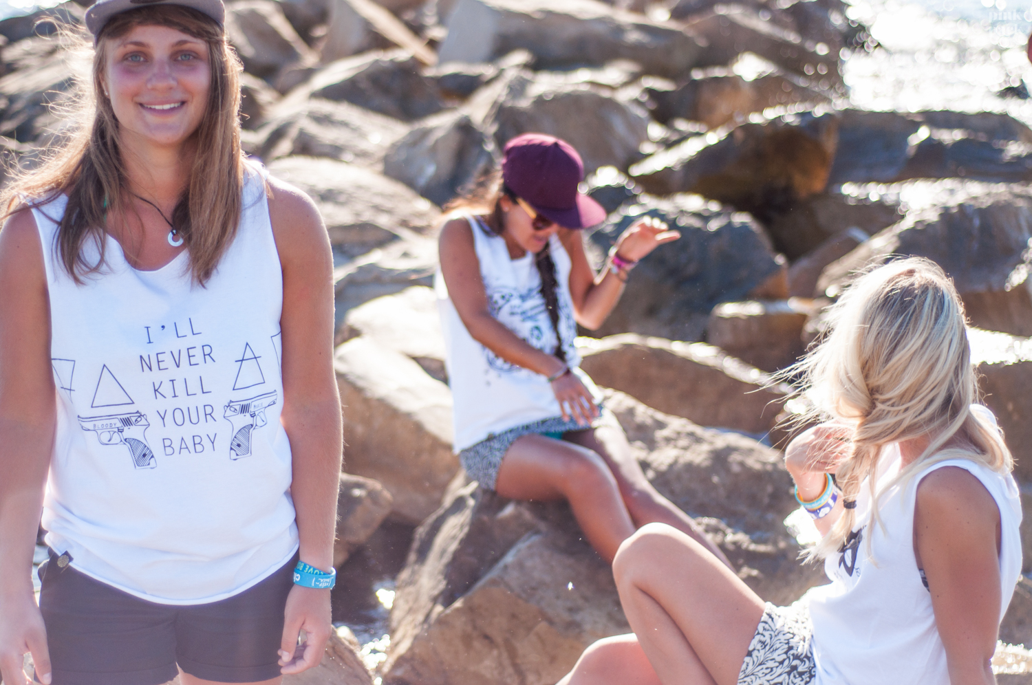 Modèles d’un jour : Nana (la casquette bordeaux), Momo (la grande au dino), Alix (la trace de bronzage bizarre au poignet), Alizée (la plus blonde, comme toujours 😉 )
