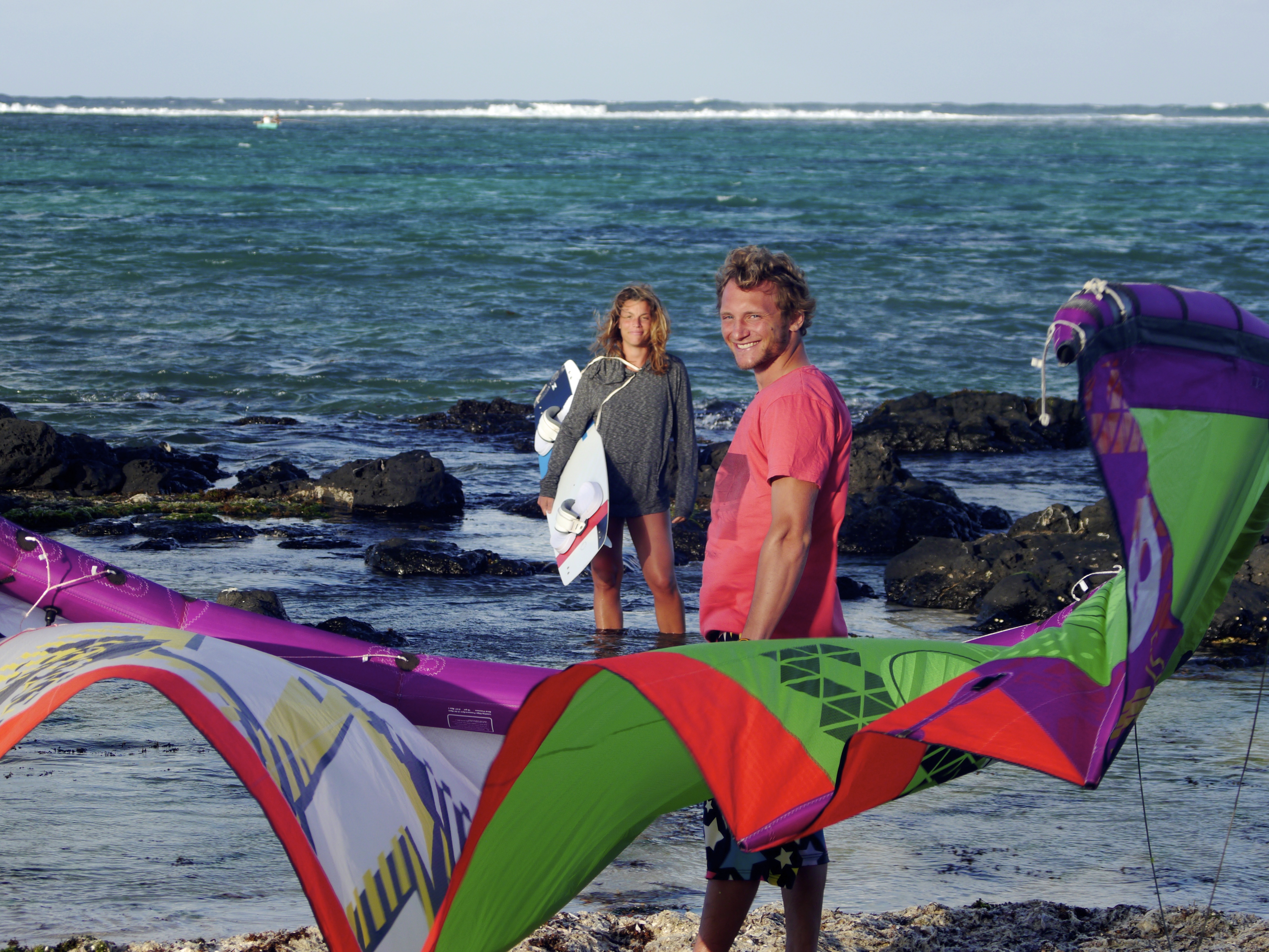 Jusqu’à présent on était plutôt flat et freestyle (généralement quand il y a de la houle on range le kite et on prend la board de surf) mais on est en train de se mettre aux vagues en kite, c’est une autre dimension qui nous tente vraiment.