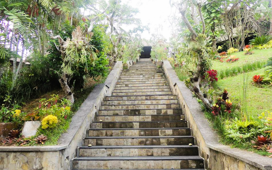 Je descends vers les deux maisons balinaises où nous mangeons et pratiquons le Yoga.