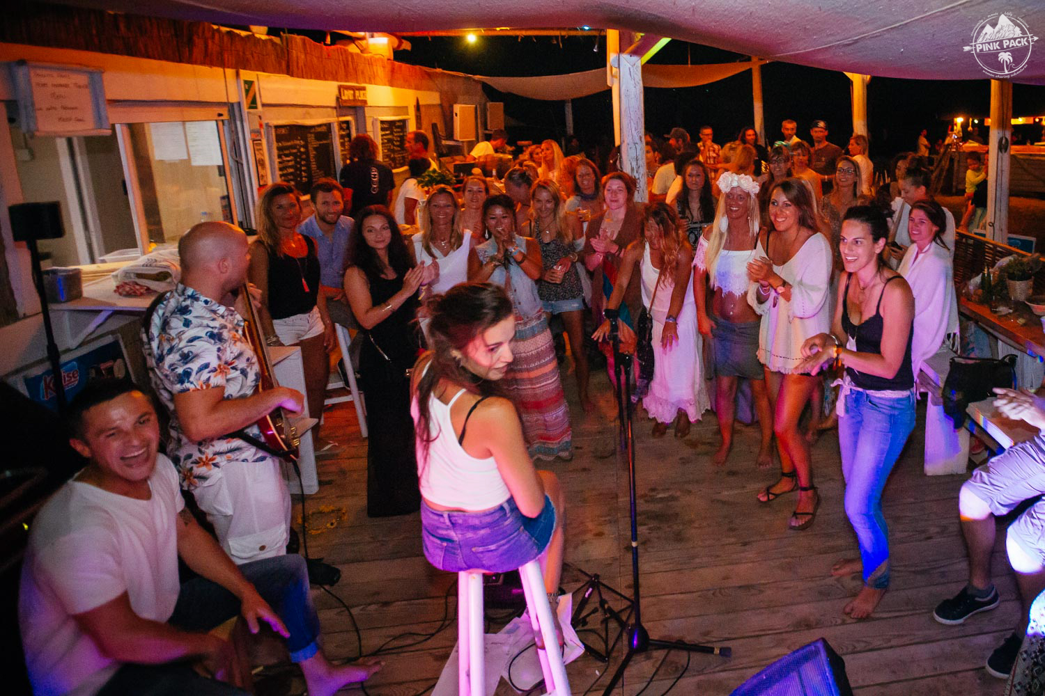 MMMMMMH ça commence à sentir drôlement bon ici… mes copines sont revenues !!! Aaaah ça y est, finie la crème solaire toxique (la protection du corail ça ne me regarde pas), les peaux sont propres et se gorgent d’alcool, on va se mettre une grosse mine ce soir ! Les potes arrivent, juste à temps pour le crépuscule ! Perfect !
