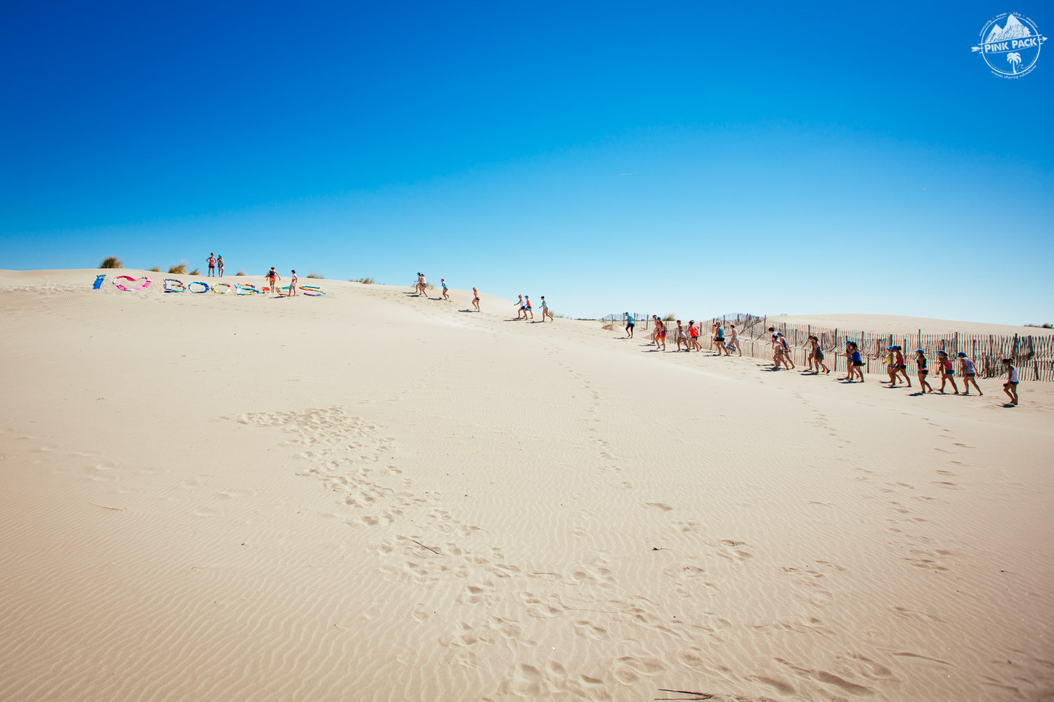 Pour retrouver le calme elles se font une yoga session dans les dunes avant de se regrouper pour la photo « I Love Boobies ». J’admire cet engagement à défendre des bonnes causes. Pour notre part, c’est le don du sang qui nous anime.