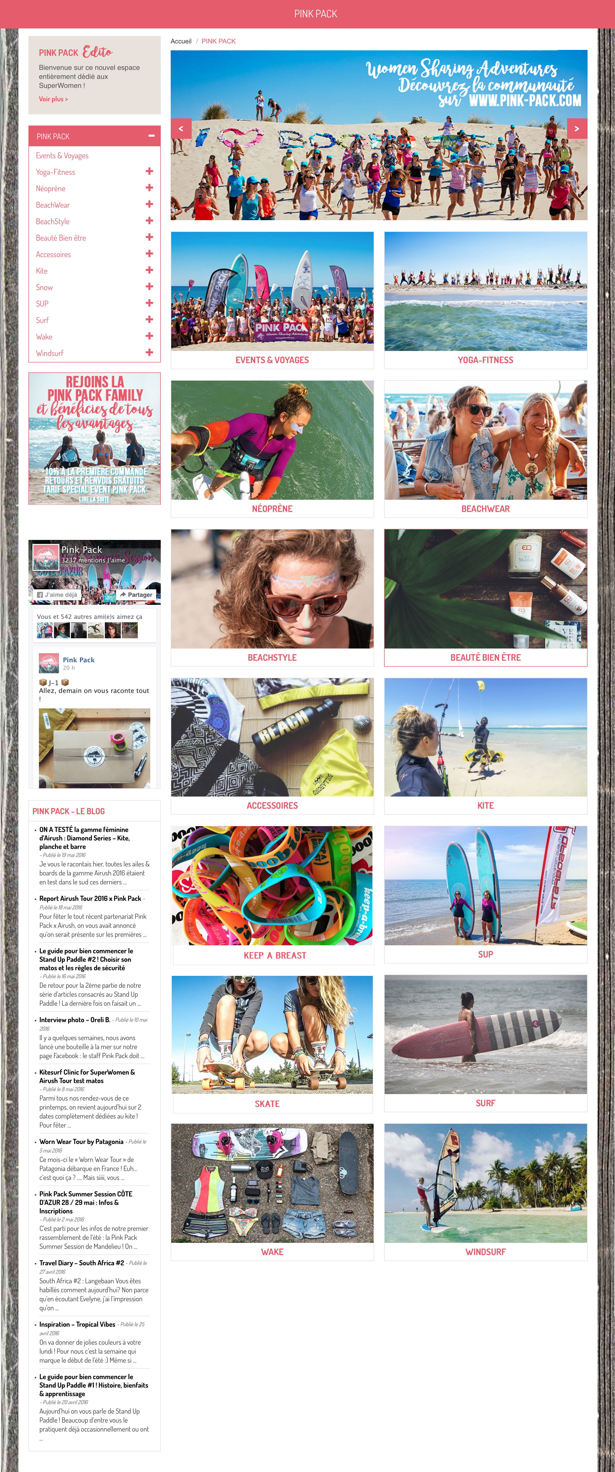 – Du matos féminin (développé pour les femmes) ou mixte (adapté aux femmes) : kite, sup, surf, skate, wake, windsurf etc et leurs accessoires (harnais, …). Et plus tard, la neige arrivera aussi 😉 Le tout agrémenté de fiches conseils / tests.