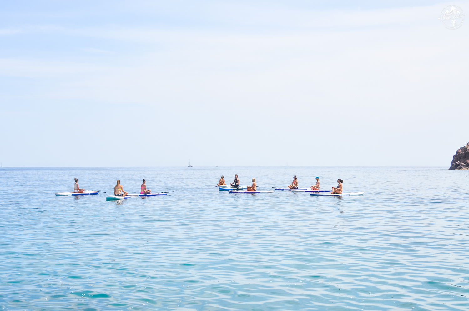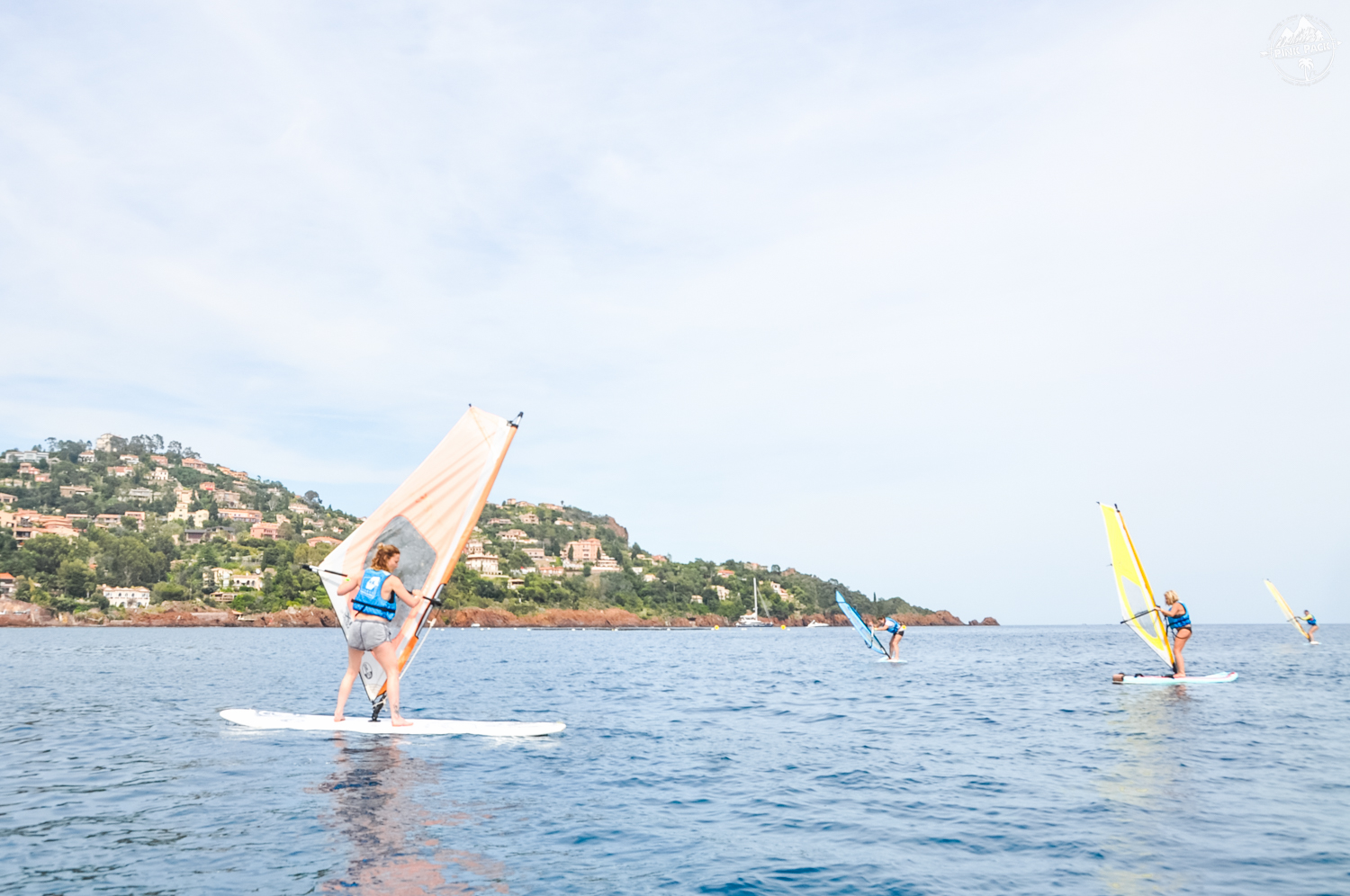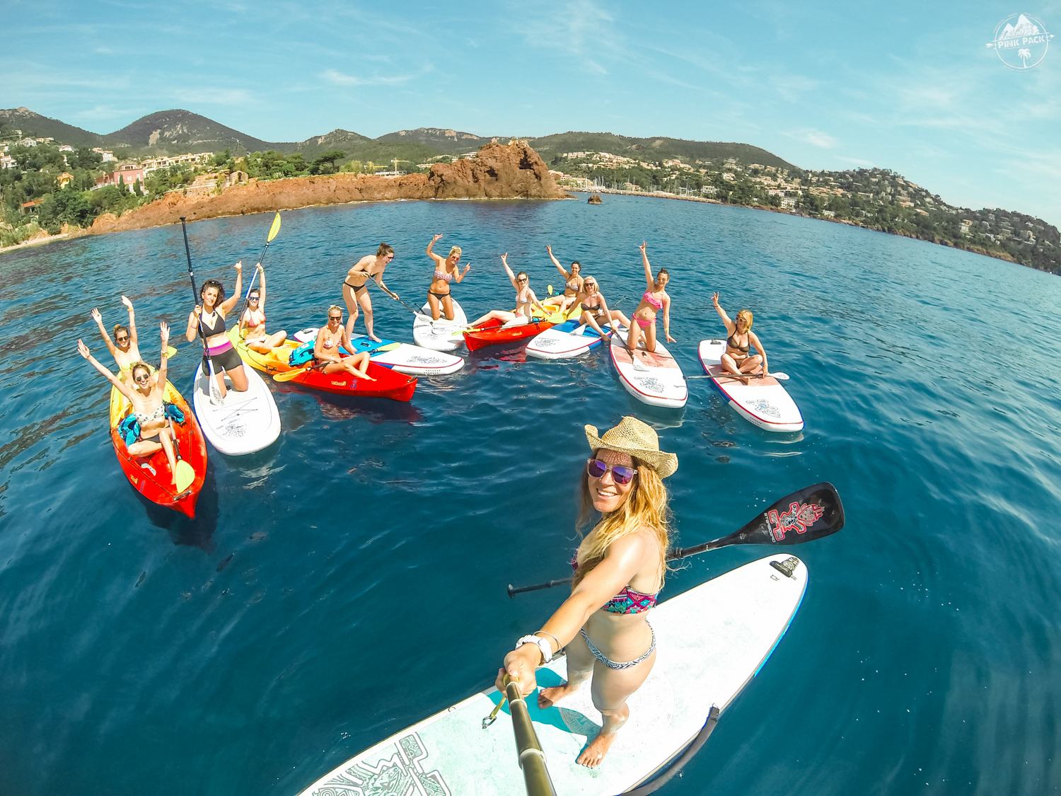 On retourne tranquillement sur notre toit pour se changer, se tartiner de crème solaire et embarquer sup et kayak à la flotte ! Après un briefing pour les novices, on file sur l’eau longer les petites calanques rouge de Théoule, découvrir des grottes, copiner avec les méduses et organiser des mega selfie sous le regard amusés des pêcheurs. On décide de débarquer sur une petite crique pour échanger les embarcations et se faire piquer par nos copines (les méduses). Du coup, Mag se transforme en Mike Horn pour sauver Lisa, tandis que je l’imite mais personne ne comprend. Chemin retour, les novices progressent pendant cette petite rando !
