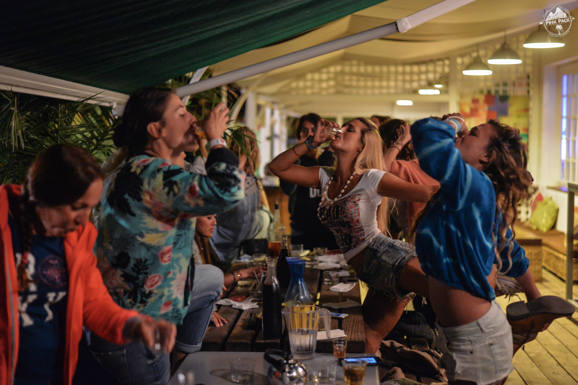 S’en suit une bonne demi heure d’hésitation. Nous sommes partagées entre 2-3 irréductibles petites diablesses motivées pour prolonger la night en ville et un premier groupe parti se coucher. Le rdv étant le lendemain à 8h sur le spot (encore une blague de la marée), comprenez qu’on se questionne 5 minutes. La raison (et l’amour du surf) l’emporteront sur nos diablesses qui auront tout de même quelques croustillances à raconter entre 2 vagues au petit matin.