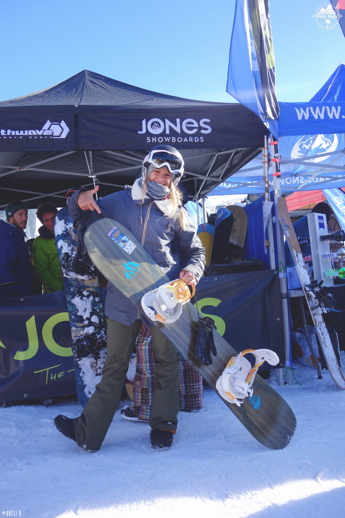 « J’ai testé le haut de gamme pour femme en Freeride sur le marché : la board Jones Flagship women 2017 en 152. Lorsque je descends la première piste pour rejoindre le télèsiege, je me sens moins à l’aise car je ride normalement des boards plus petites et celle-ci est avec un blunt nose. Après quelques pistes je commence à trouver de très bonnes sensations. Sous les conseils de Mel je ride toute l’après-midi avec la Jones. C’est une board trés stable à haute vitesse et qui a une excellente accroche. La board idéale pour les rideuses qui veulent envoyer en freeride. »