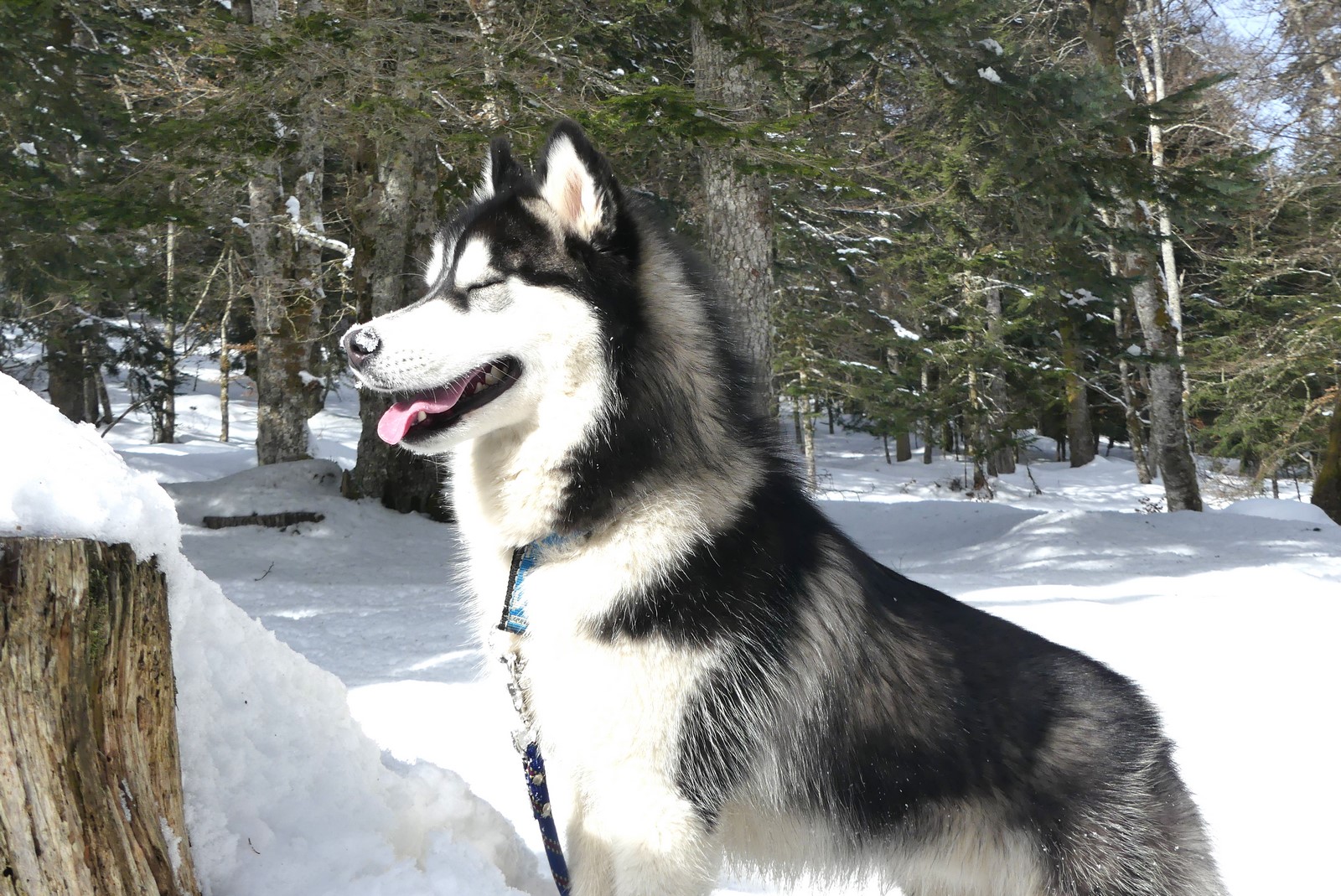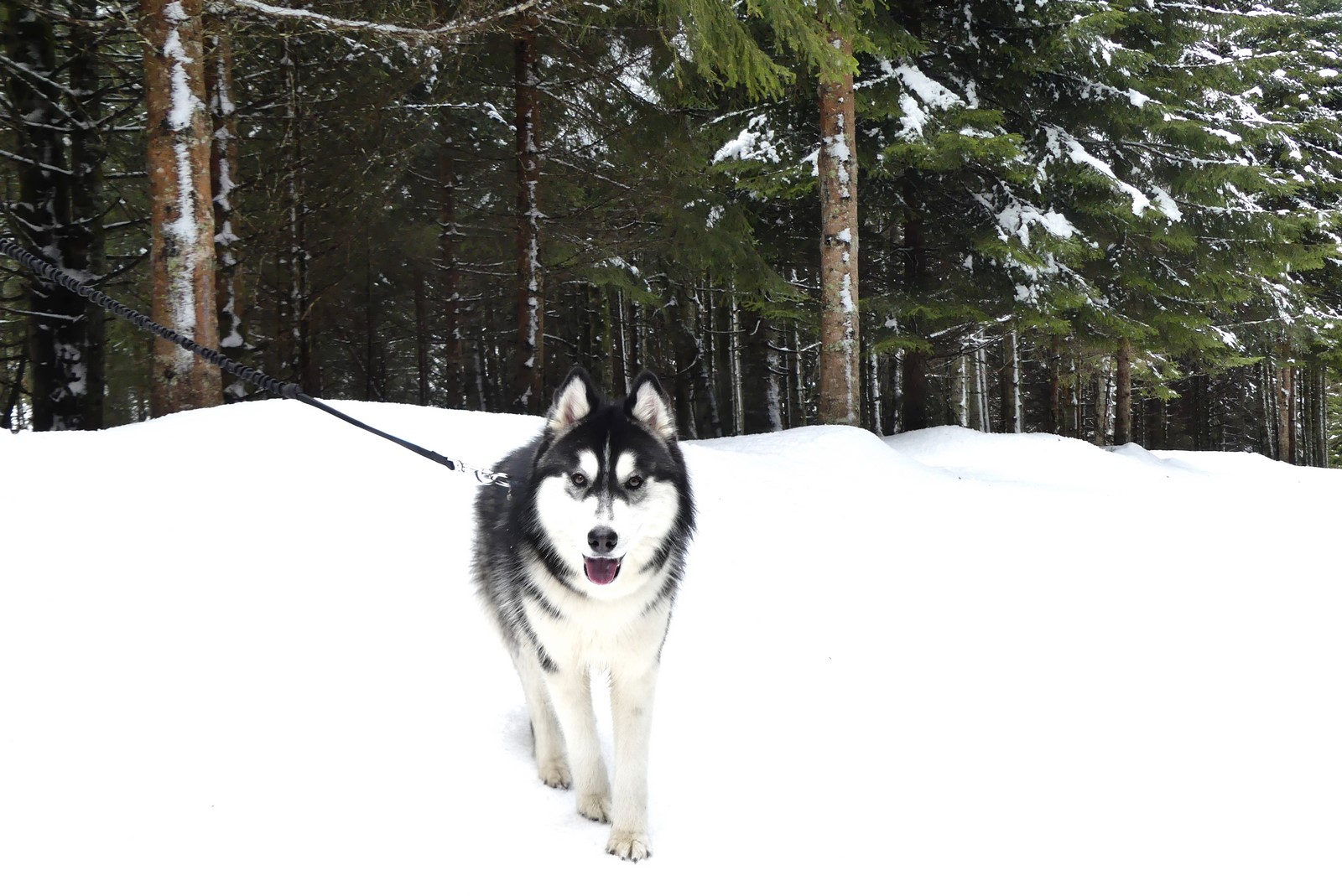 Un chien adapté à ce type d’activité : on va éviter les yorkshires…! Dans mon cas, il s’agit d’un husky sibérien répondant au nom de Dane (il répond aussi à « gâteau », « manger », « faim », « chat »…).