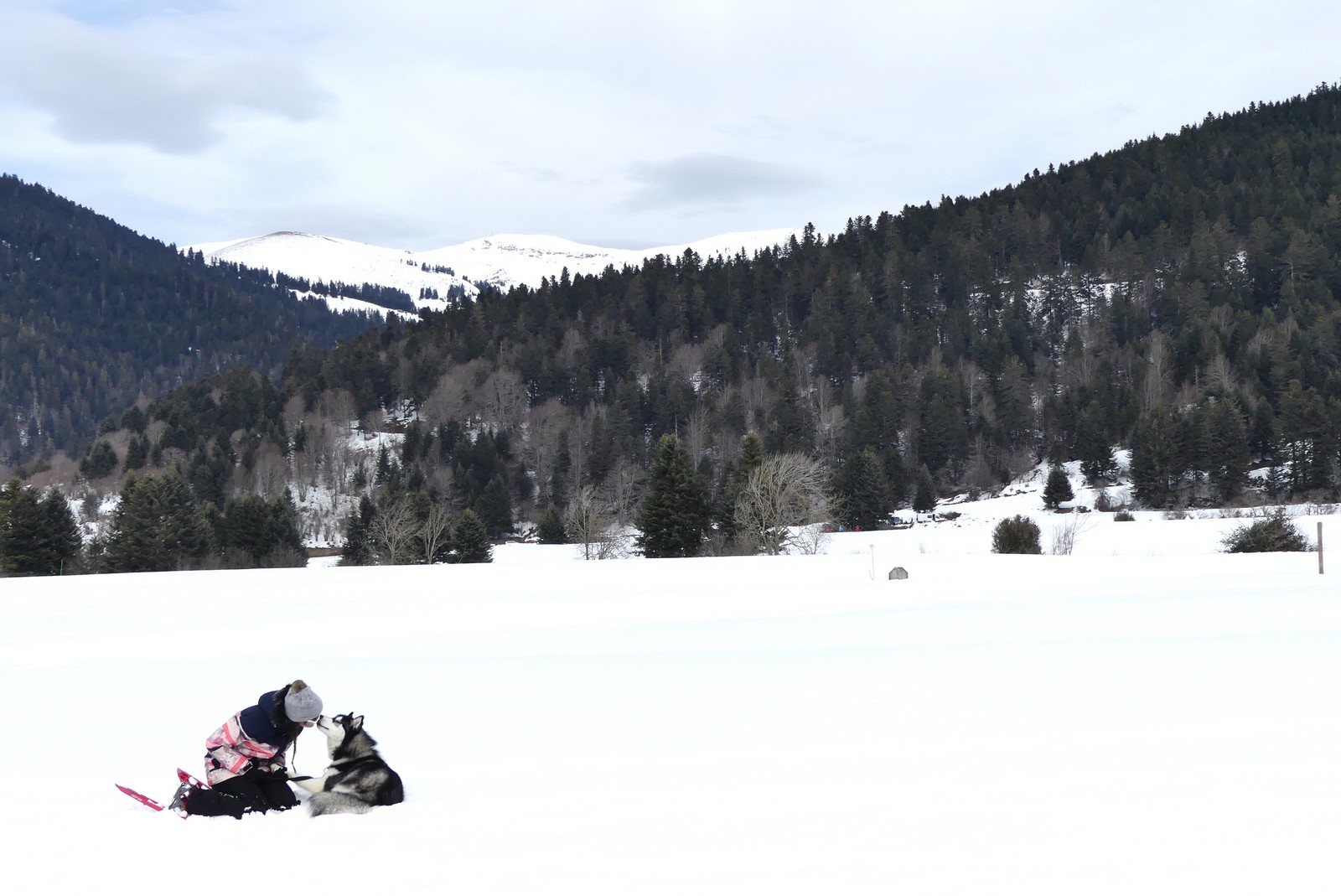 Mais tout ça, ce n’est que du plaisir! Les fous-rires, la neige, les paysages magnifiques, le silence (parfois !), le partage avec son chien (même si c’est un chien de « loc », on a le droit de lui faire des câlins !), bref, j’ai adoré! Et mon petit Dane aussi !