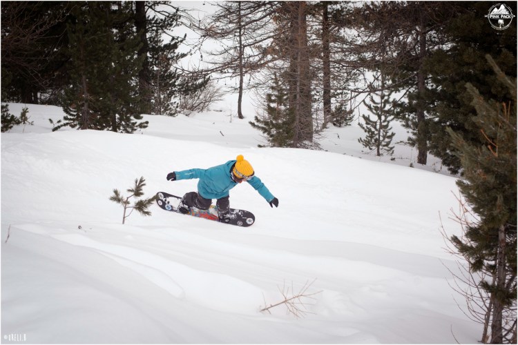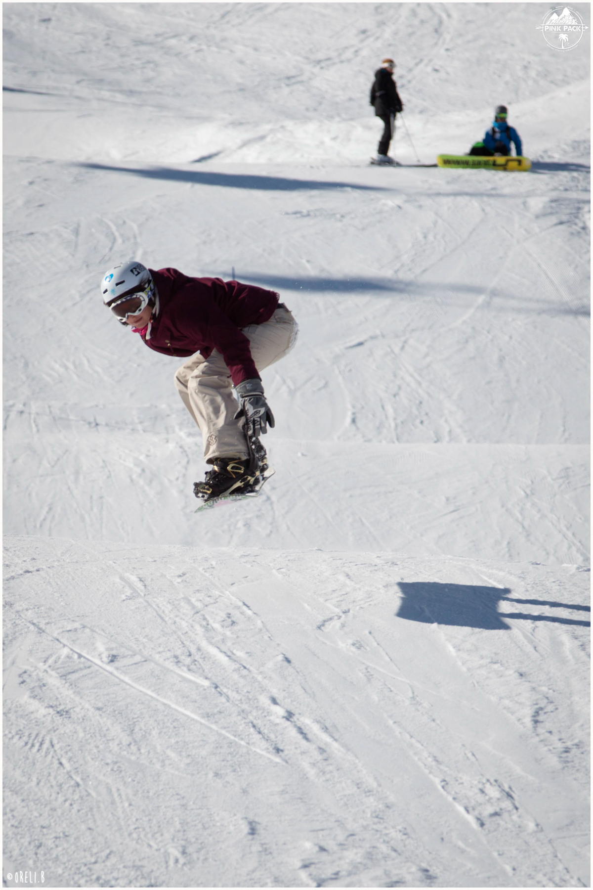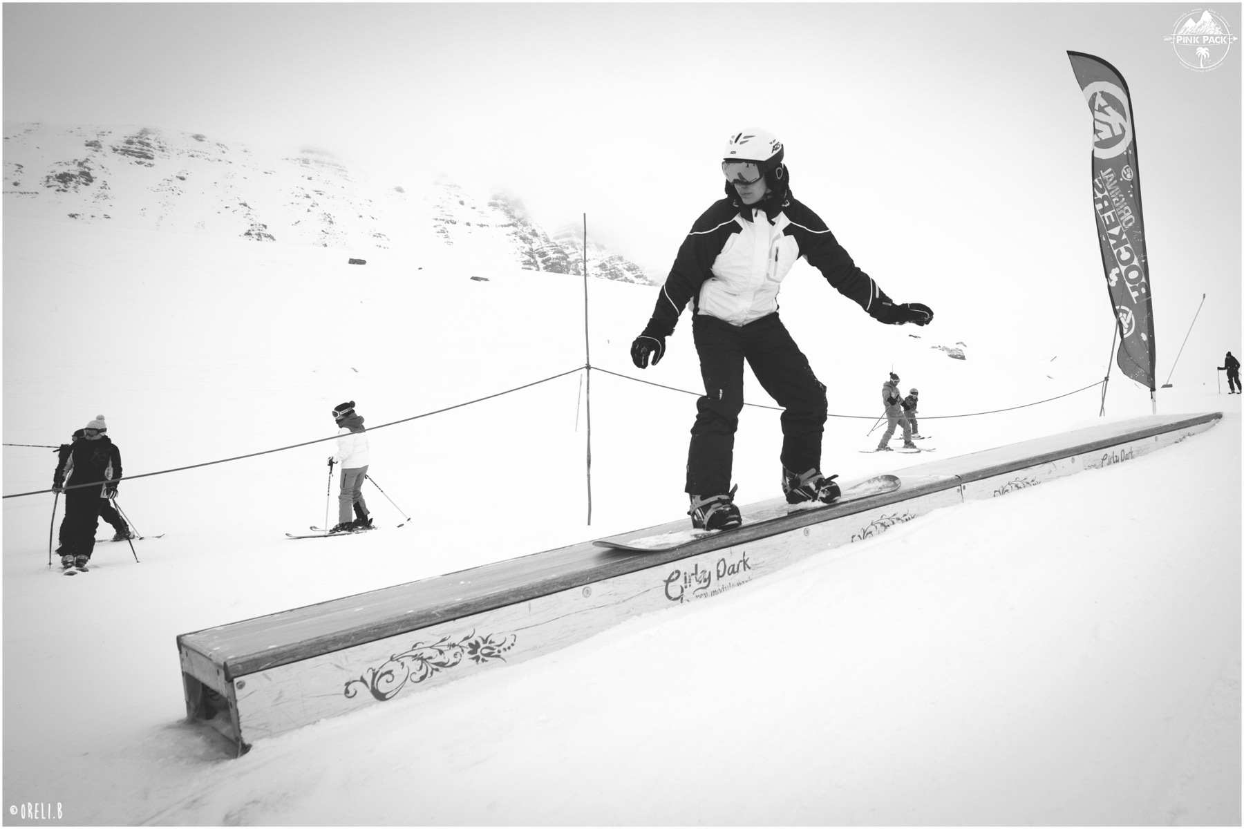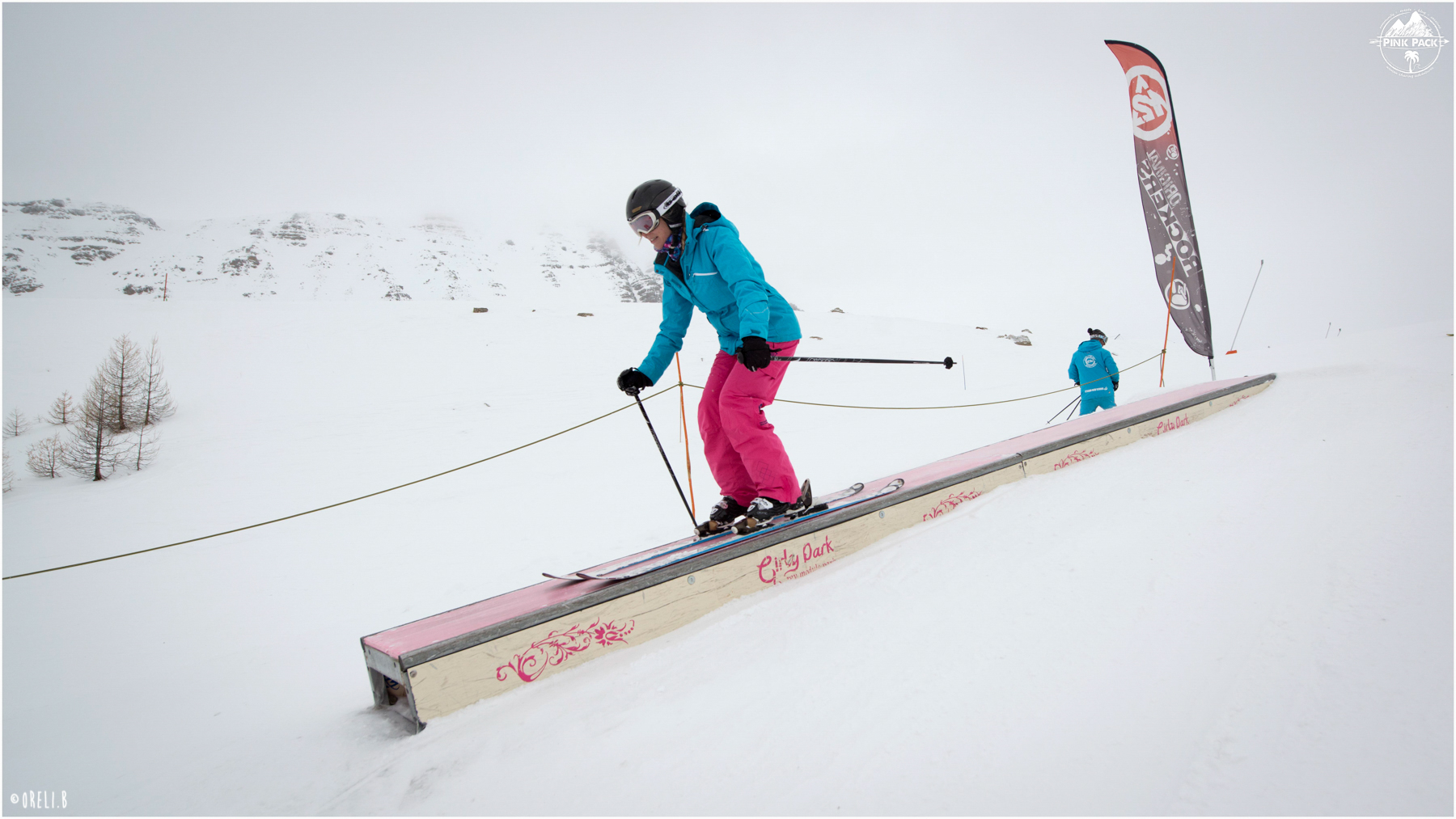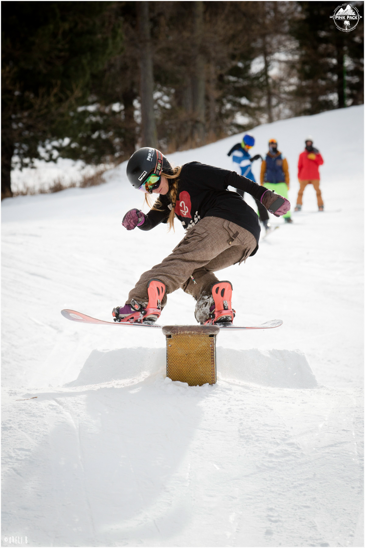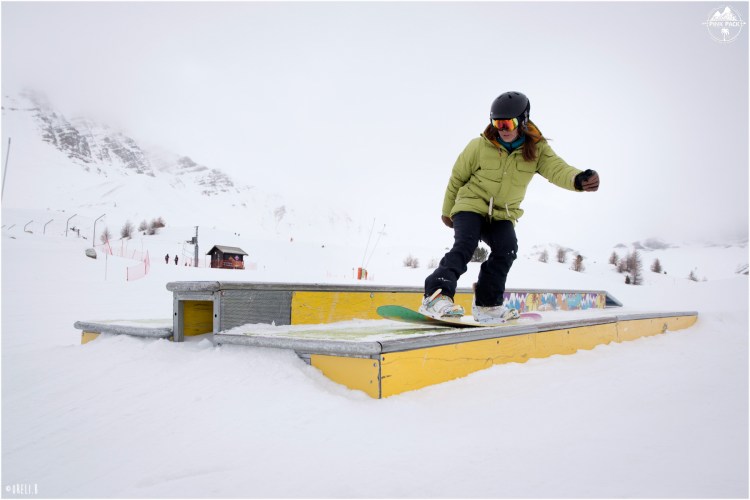 On attaque les journées accompagnées par les coach de la Pure Snowschool, Lulu et Benji. Ils évaluent le niveau des filles, replantent un peu le décor sur certaines bases obligatoires pour passer au niveau au-dessus, puis on est rapidement passée sur les parks, prenant soin de choisir les modules ou kickers les plus adaptées aux girls. Chacune en fonction de sa motivation, de ses appréhensions est allée chercher un peu dans ses limites… on sait jamais, elles pourraient être plus loin que ce qu’on pensait !