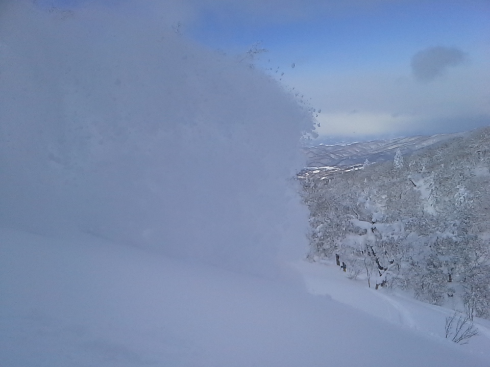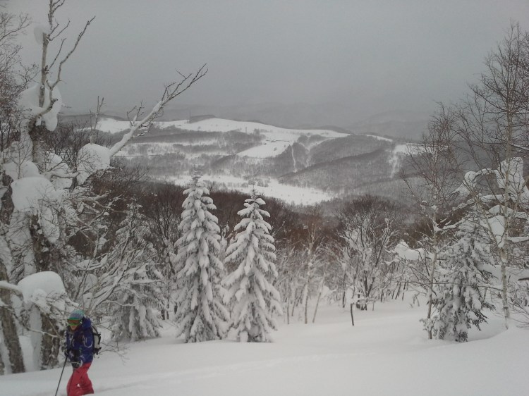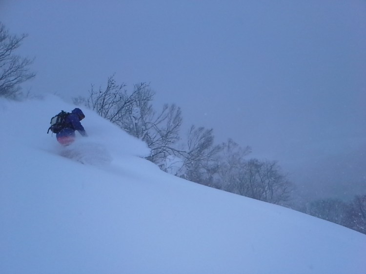Avec l’envie de découvrir d’autres spots, on reprend la route direction la capitale d’Hokkaido, Sapporo. Après une petite visite du centre avec sa galerie marchande souterraine, on rejoint la station de Sapporo Teine, juste au-dessus de la ville. Il y a du monde et pas tant de fraiche. Après une expédition loupée jusqu’à Asihidake, « La Grave du Japon », pour cause de tempête et de télécabine fermée, nous voilà de retour à Kiroro, la mecque de la pow pow. Le vent souffle ici aussi mais bien moins violemment et la neige ne s’arrête pas de tomber ! Après avoir repéré une belle pente assez facile d’accès, on met les peaux pour une petite rando. L’effort est récompensé, la descente est vierge et gavée de neige. Arrivés en bas, on remonte !