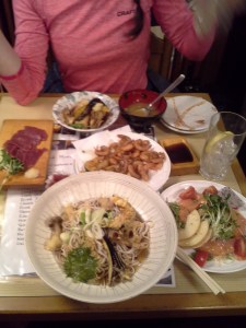 On en profite avant d’embarquer pour se faire notre premier « Onsen » (bain traditionnel d’eaux chaudes à 42°C) et un bon resto. La bouffe est excellente et pas si chère, bonne nouvelle !