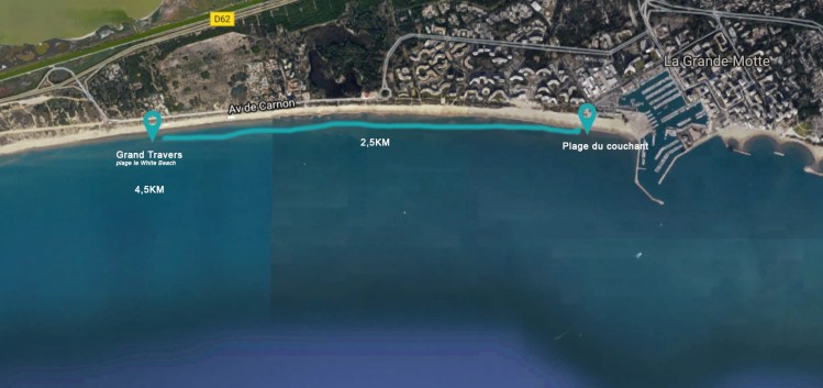 > La mer : de la Grande Motte jusqu’au Grand Travers (5km aller/retour) :