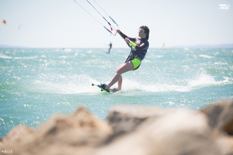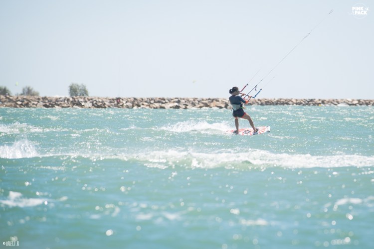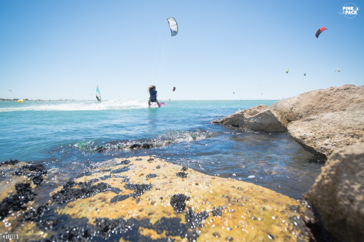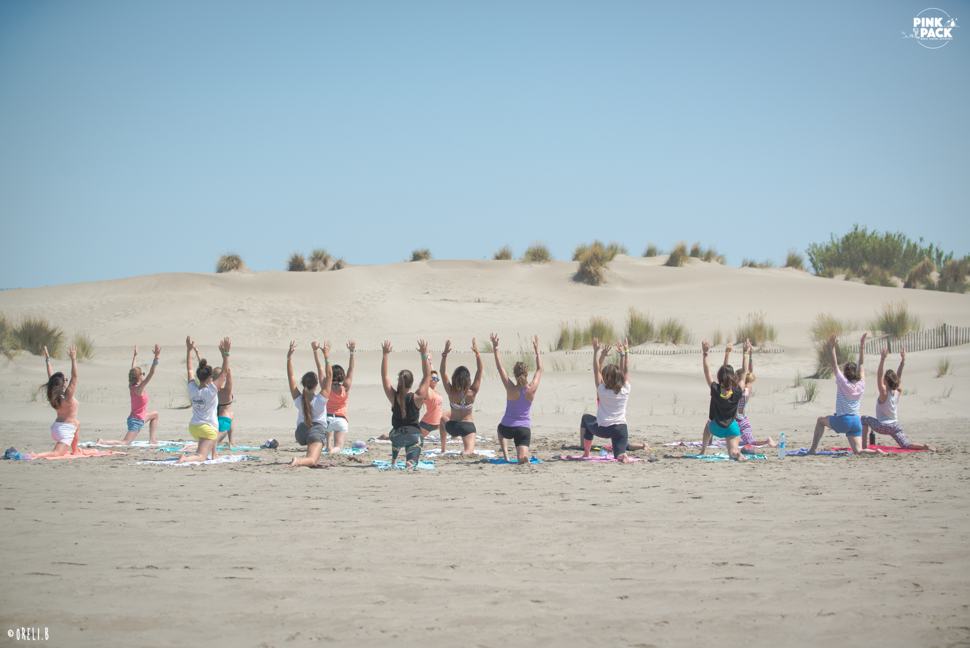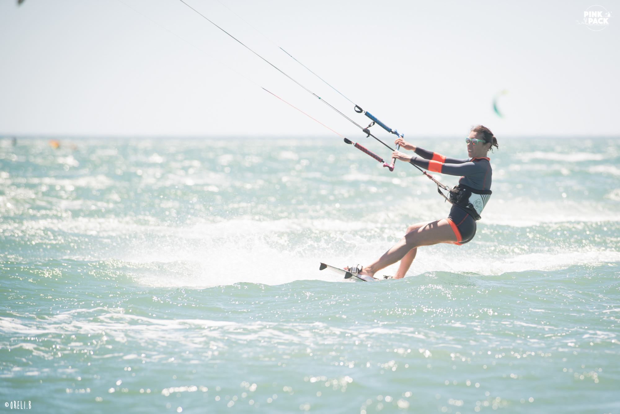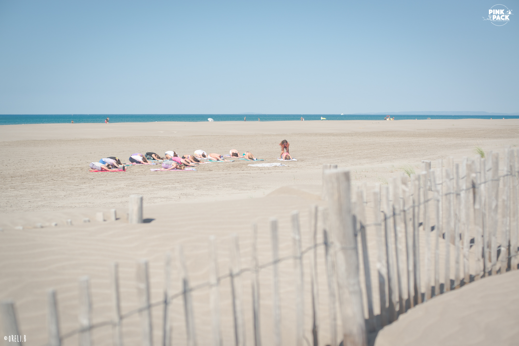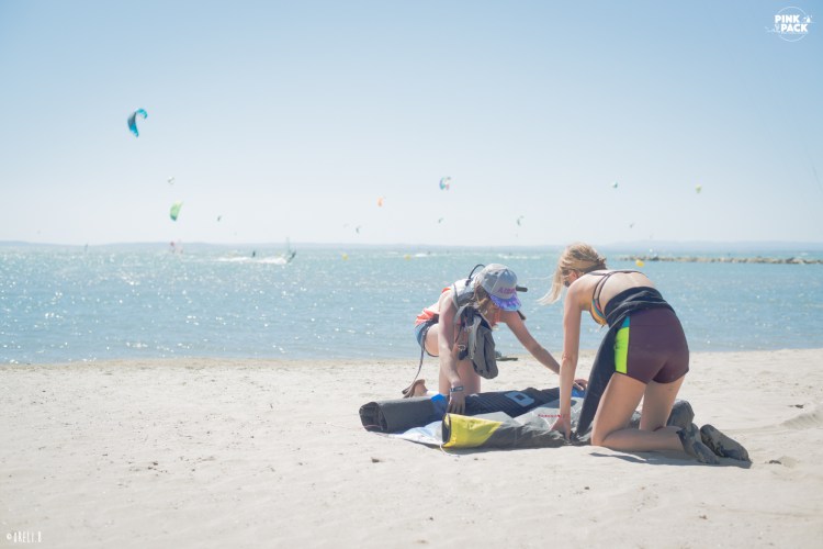 Le dimanche matin post Pink Pack Party est en général sur un rythme beaucoup plus doux que la veille … Rdv sur le sable pour réveiller le corps en douceur avec un morning beach yoga, en attendant que le vent thermique se décide à rentrer. On termine la matinée par la traditionnelle photo de famille officielle, puis petit lunch healthy au soleil. Certaines commencent à plier bagage, d’autres siestent. Le vent mettra un peu de temps à se lever, celles qui ont pu prolonger leur dimanche un peu tard ont gouté aux conditions so sweet d’un dimanche de thermique à l’Espiguette !