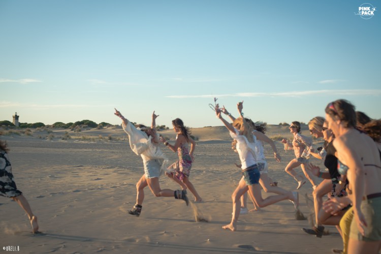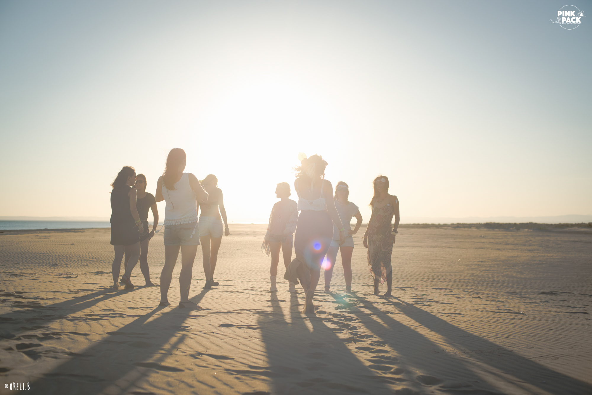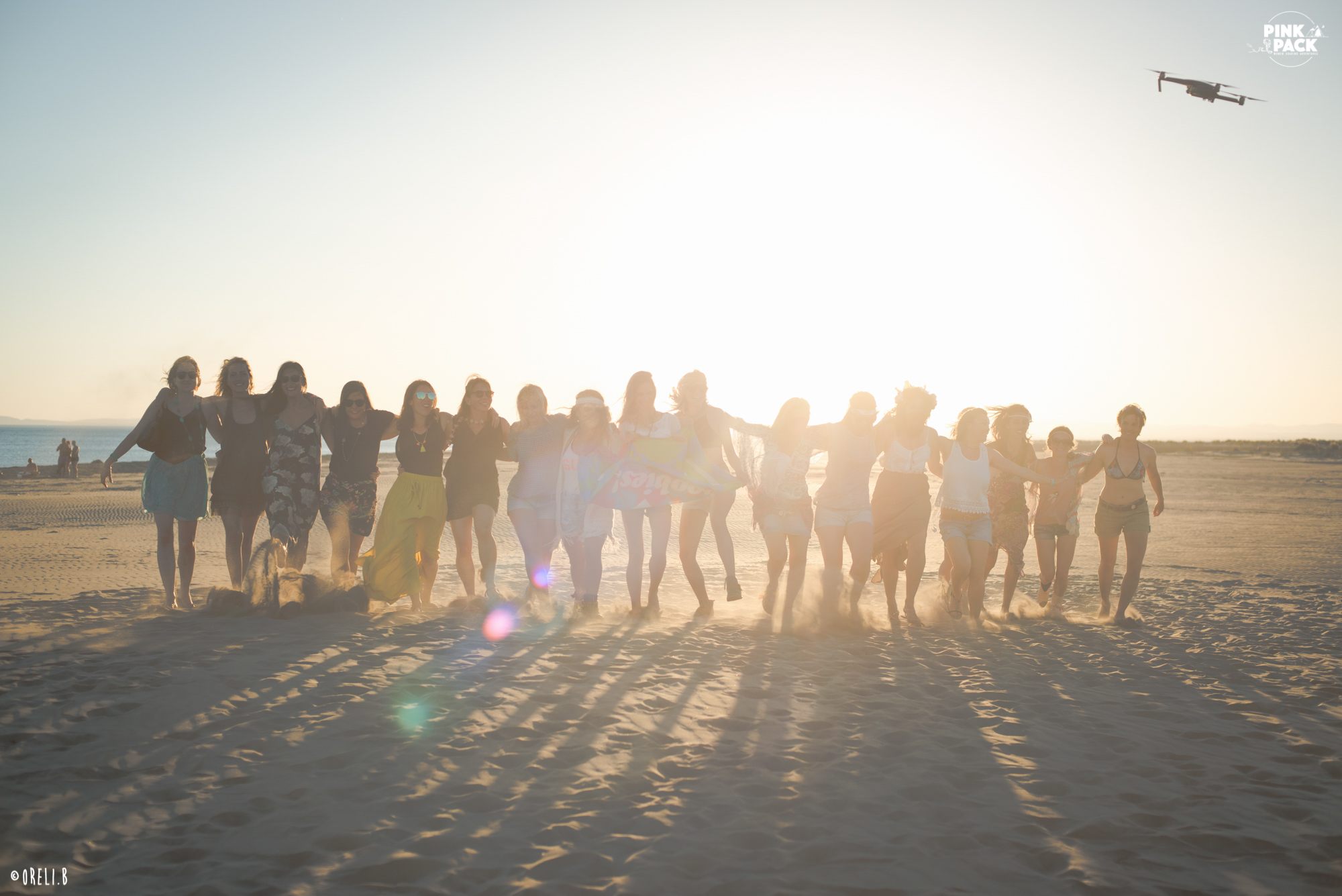 Dress code « Festival » pour cette soirée à l’Oyat Plage ! Rendez-vous au sunset pour immortaliser notre groupe de SuperWomen et courir dans le sable comme si … ah ben en fait pour rien. C’est juste joli 20 filles qui courent dans le sable en robe longe et couronne de fleurs au sunset ! Y a même le drone de Just-In qui est arrivé pour filmer ça du ciel ! Je vous montre ça vite !