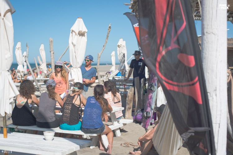 Comme d’hab’, on attendait les filles vendredi soir au QG de la kite school à 2 pas de la mer. On sirote l’apéro local en attendant les dernières arrivées. On fait connaissance, on rempli les fiches de niveau kite avec Just-In, on papote technique et conditions météo. Dernier petit brief annonçant le programme du week end et file se coucher, les conditions sont annoncées costauds pour le lendemain !