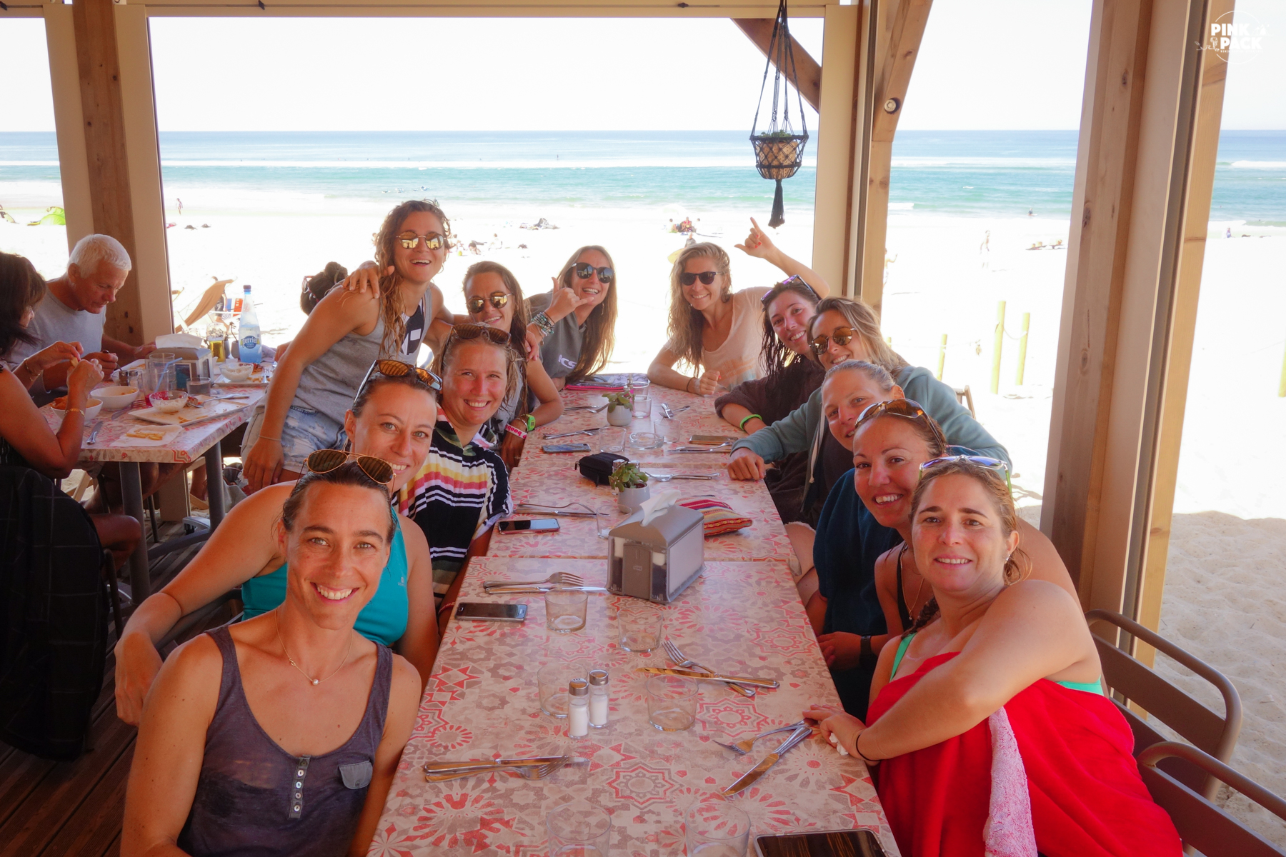 C’est sur ces bonnes bases qu’on accueillait celles qui avaient cru en cette magie, et qui avaient mis leur shorty dans leur valise. On se retrouve une douzaine de superwomen à prendre l’apéro à Cap Océan le centre d’hébergement à Seignosse qui nous accueille pour la 2ème année, tout près du spot.