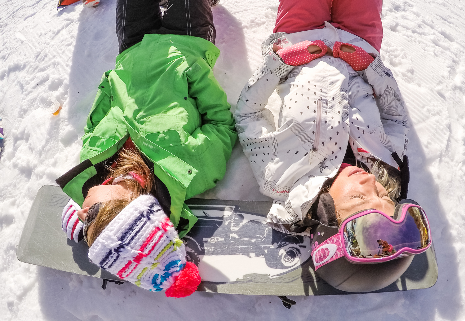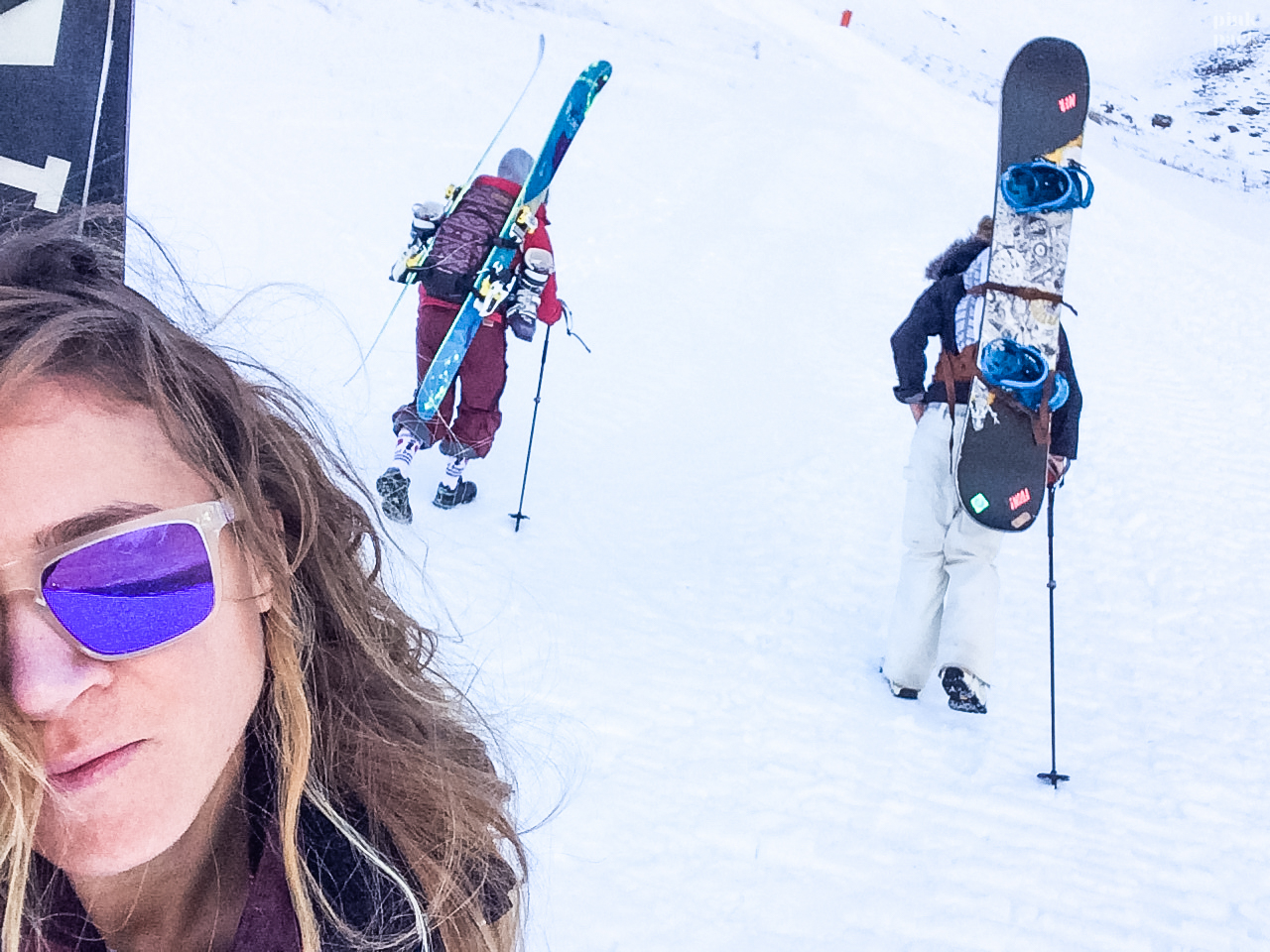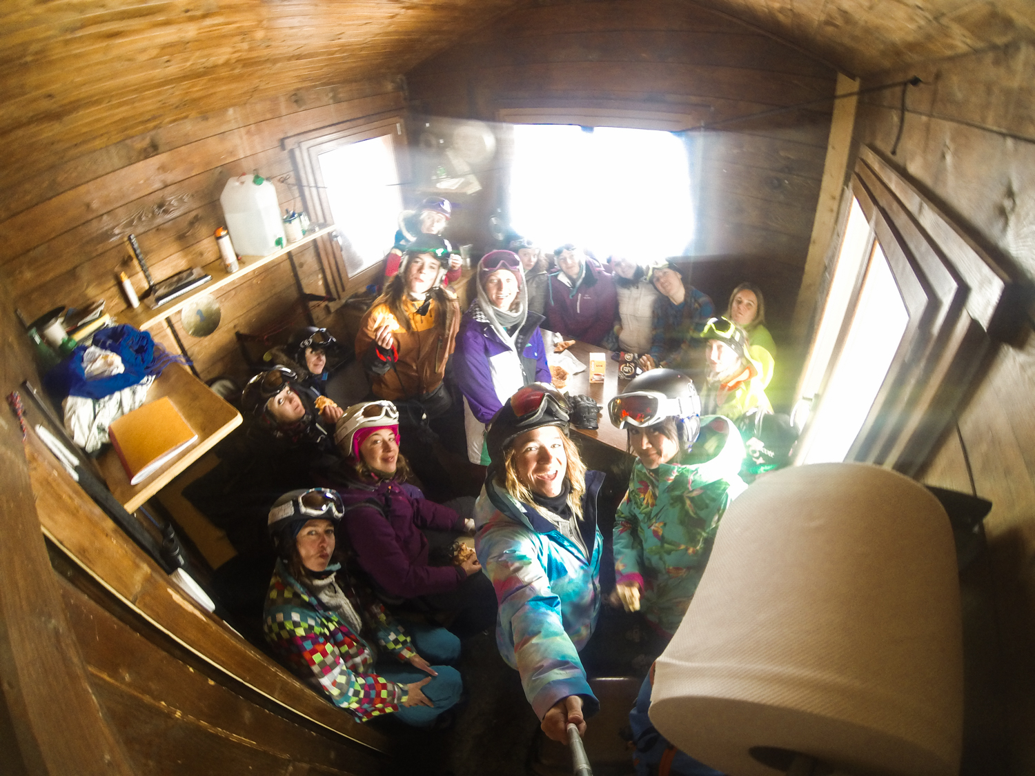 Les chamallows ont redoublé de densité dans le ciel et pour finir la journée de ride, certaines sont reparties rider dans les sapins où la peuf commençait à s’accumuler, pendant que les autres sont allées mesurer le taux d’humidité dans le sauna de la résidence.