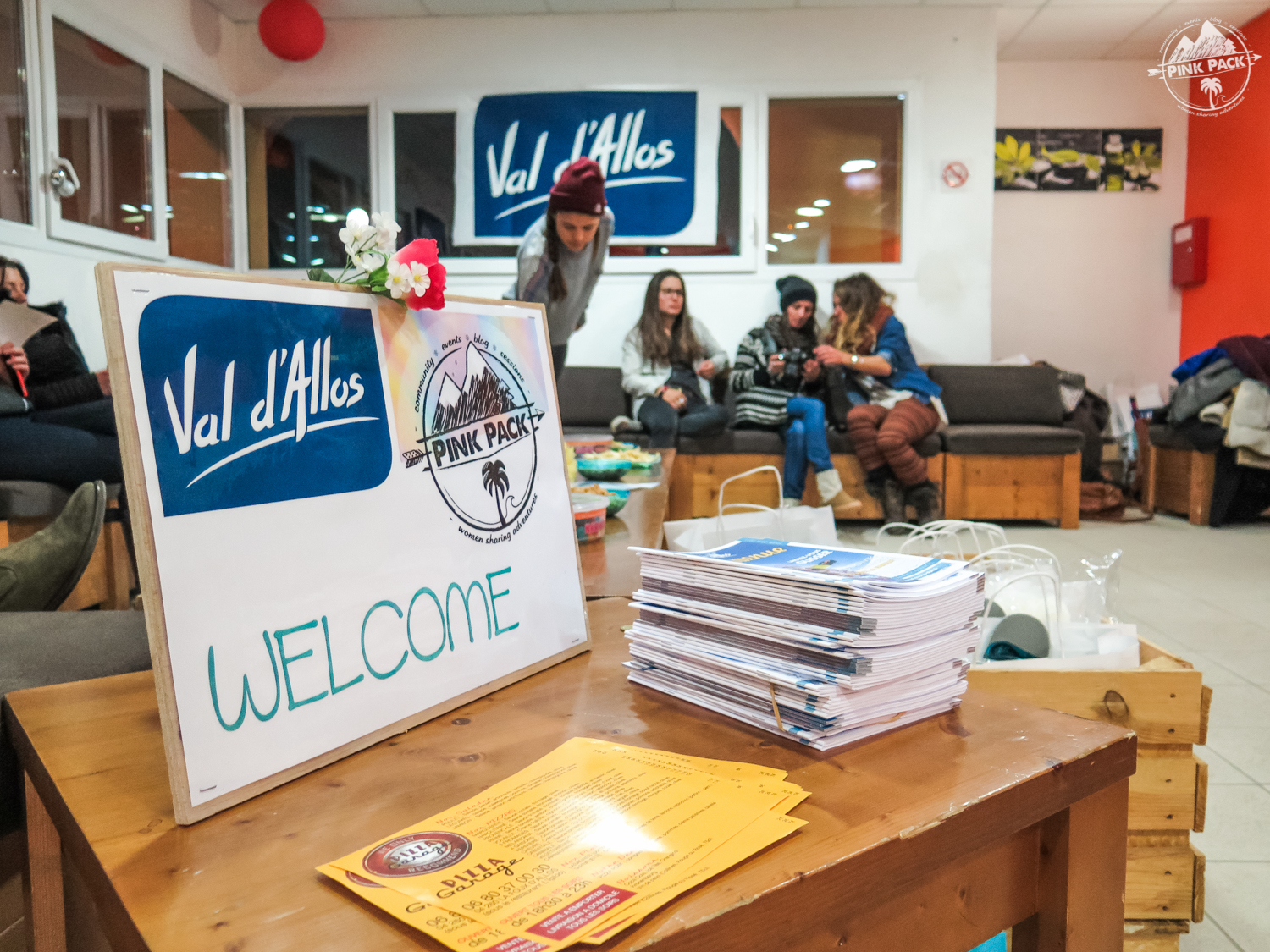 Vendredi, avec tout le staff on s’active pour mettre en place le pot d’accueil pour les filles qui arrivent dans la soirée. On fait les welcome bags avec les derniers goodies reçus : Skullcandy, Roxy (mission interception de transporteurs 😉 ), Pink Pack, Keep A Breast et Val d’Allos, on peaufine l’organisation du challenge par équipe, on découpe des crudités, on trie les nombreux cadeaux des partenaires etc.