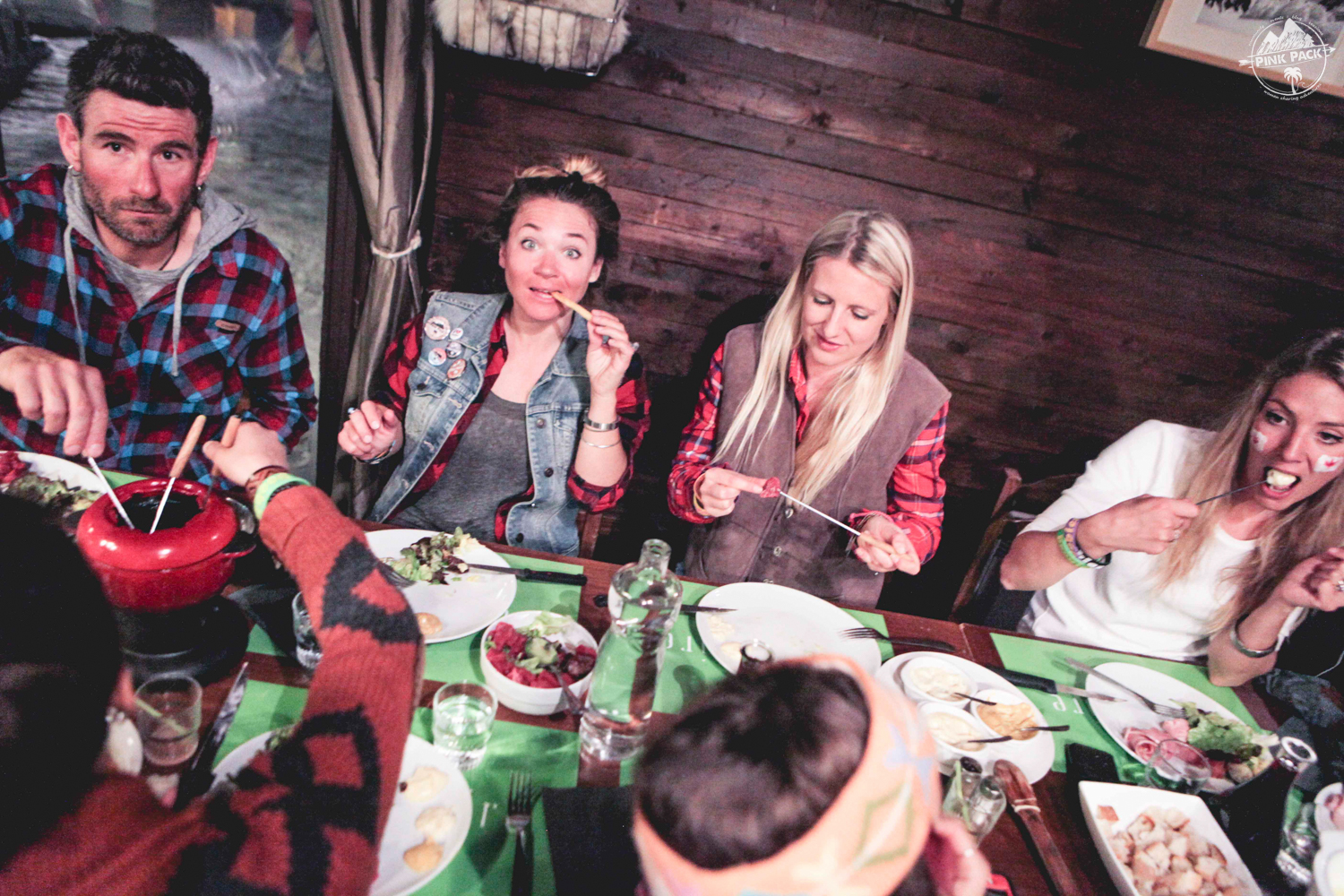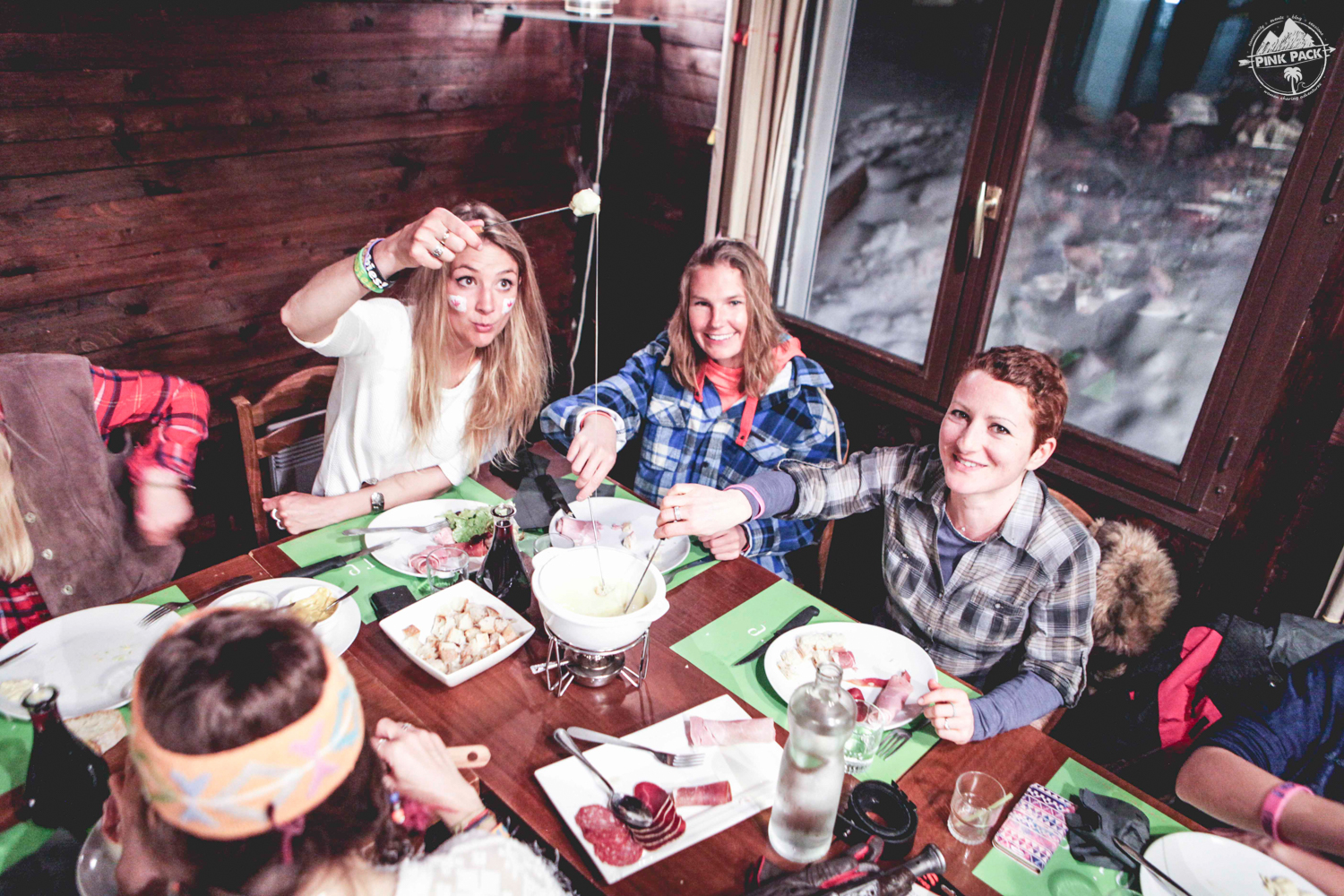 Il est maintenant l’heure de déguster les fondues bourguignonnes et savoyardes pour se remettre de toutes ces émotions ! Un bon repas montagnard se clôture toujours avec du génépi, on décide alors de faire un mini challenge yoga pour que chacune mérite son shot 😉