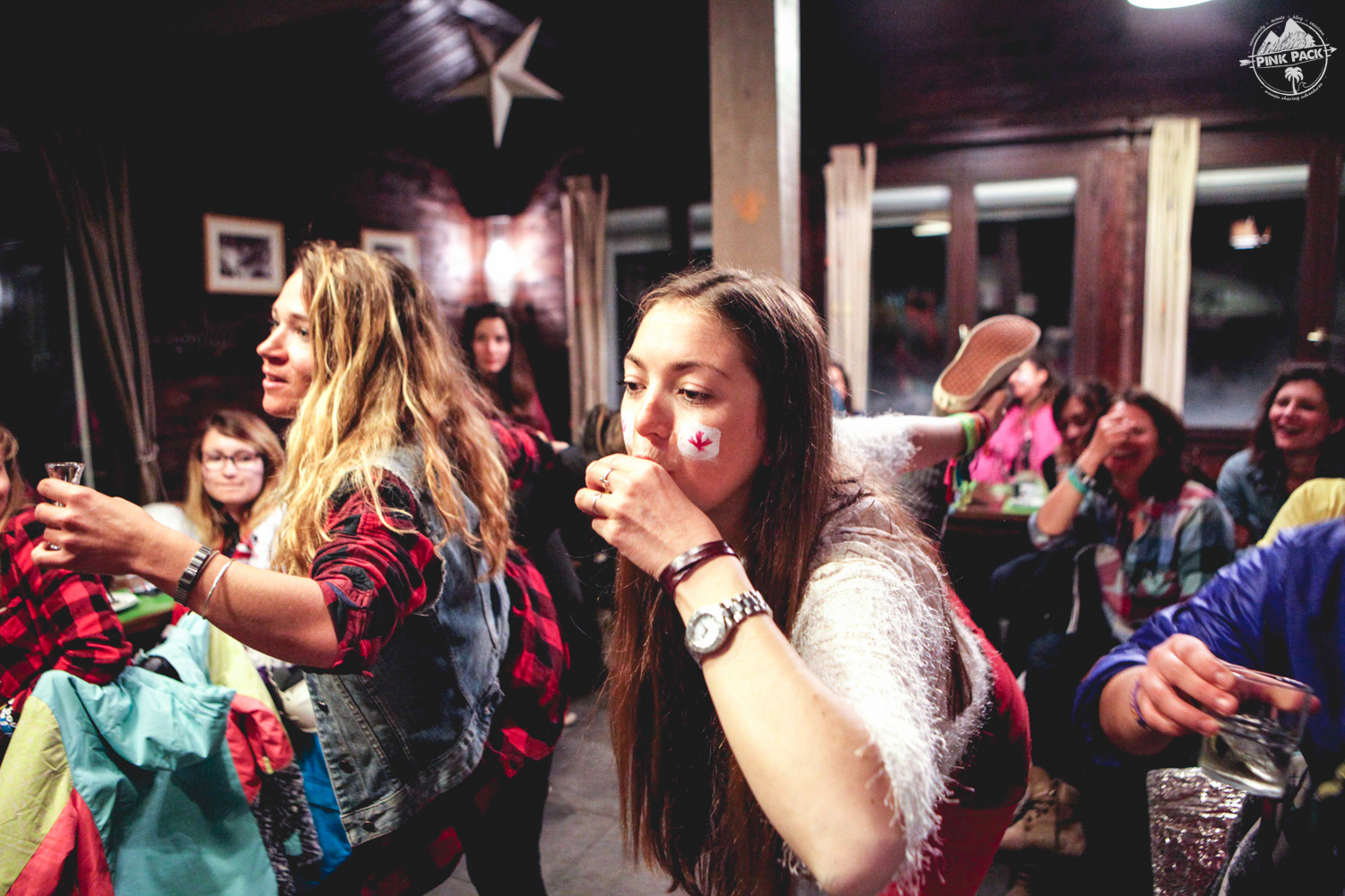 Quelques jours avant le week end, on avait lancé le thème de cette soirée « Oh Canada » avec une belle récompense pour la meilleure tenue : une jacket de snow Roxy ! On a été agréablement surprises de voir que les filles ont su jouer le jeu et nous surprendre !