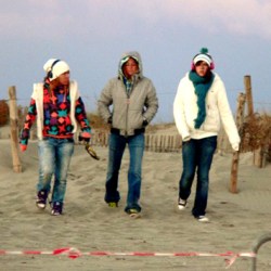 Je trouve les mots pour les rassurer (et surtout, je pouvais pas porter 12 ailes de kite, 3 planches et 4 harnais toute seule) et nous voilà, 25 filles, galopant sur la plage de L’Espiguette, chargée comme des mules.