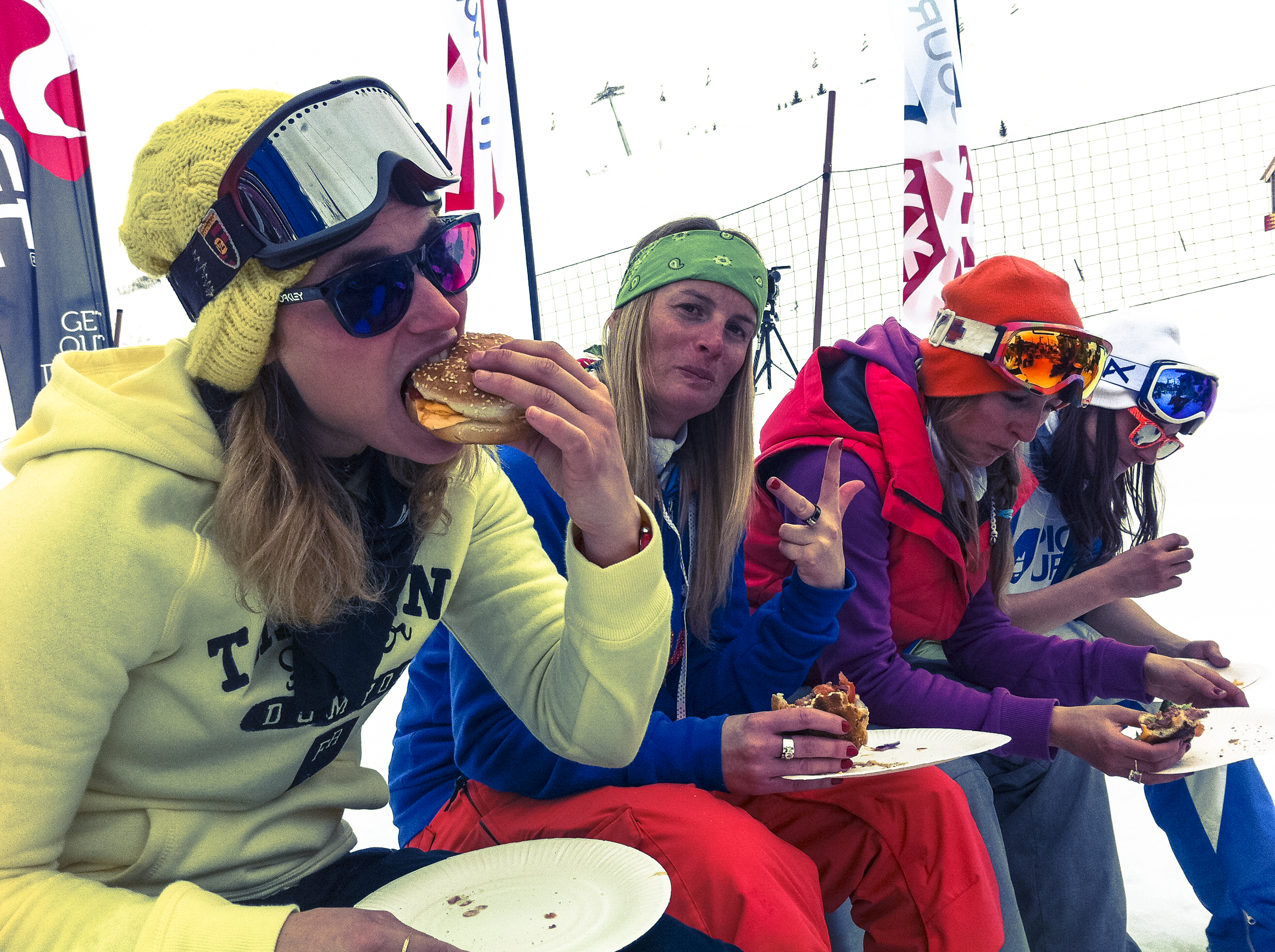 En attendant les photos officielles et un report sur les performances snowboardistiques (sans oublier les double-spatulées) des 25 rideuses présentes sur l’événement, voici à chaud, les souvenirs de nos iphones.